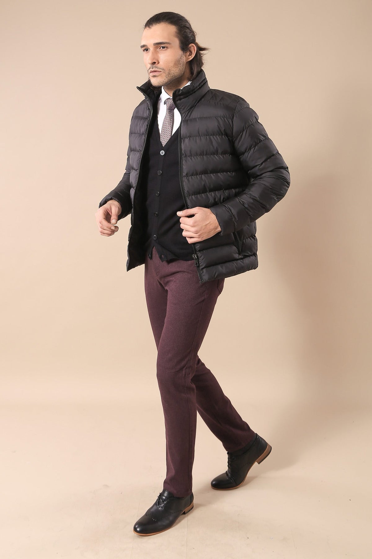 Inflatable coats are one of the most preferred outerwear outfits today. It is frequently demanded by men both on special occasions and in daily life. In addition, inflatable jackets add a sporty atmosphere to men in terms of appearance. Black short male inflatable coat is a product designed from quilted fabric. It is a steep collar and short coat. Its color is black. For this reason, it can be easily combined with any color trousers, shirt or shirt.