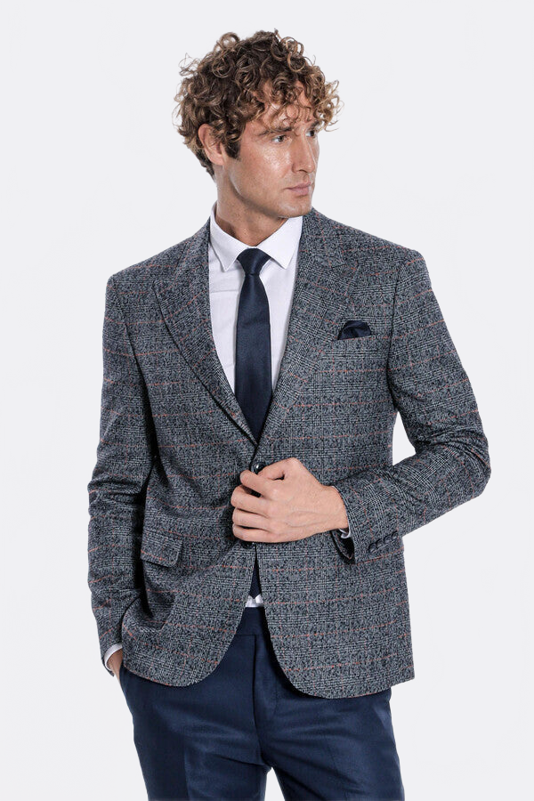 Checked Navy Blue Men Blazer - Wessi