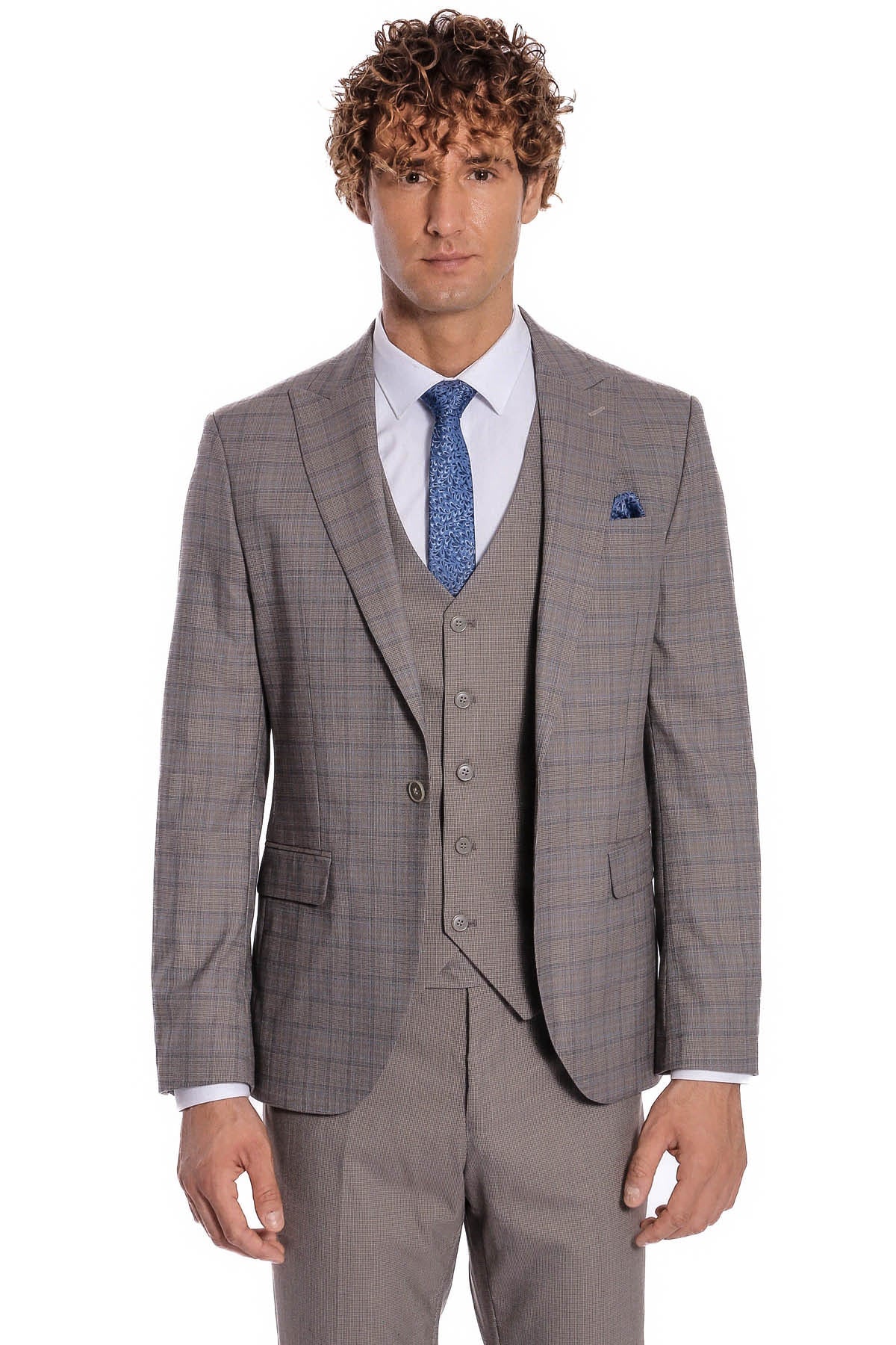 Checked Slim Fit Light Brown Men Suit - Wessi