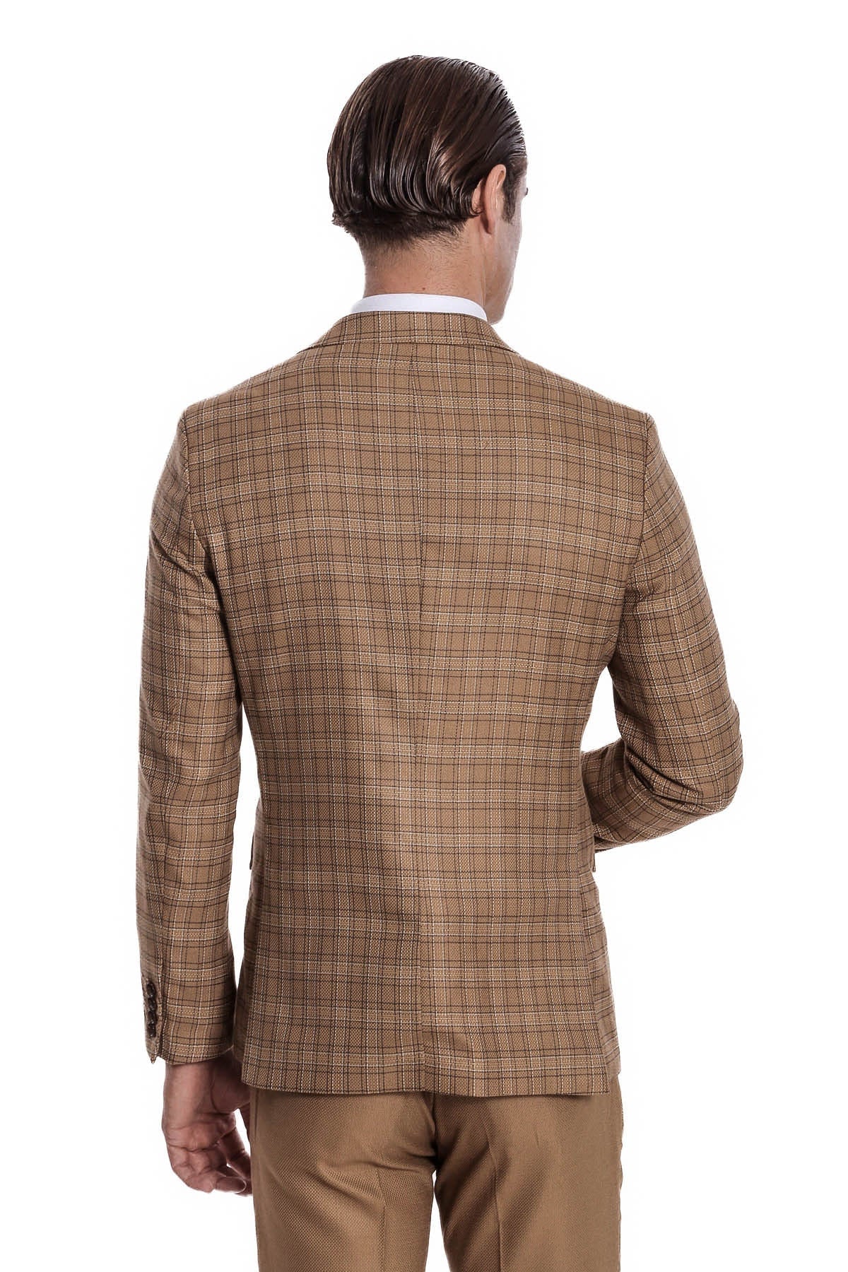 Checked Slim Fit Tan Men Suit - Wessi