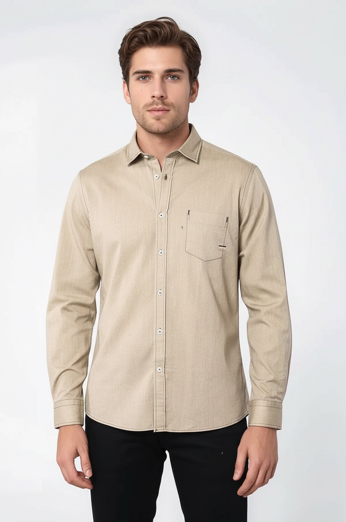 Cotton Long Sleeves Beige Men Shirt - Wessi