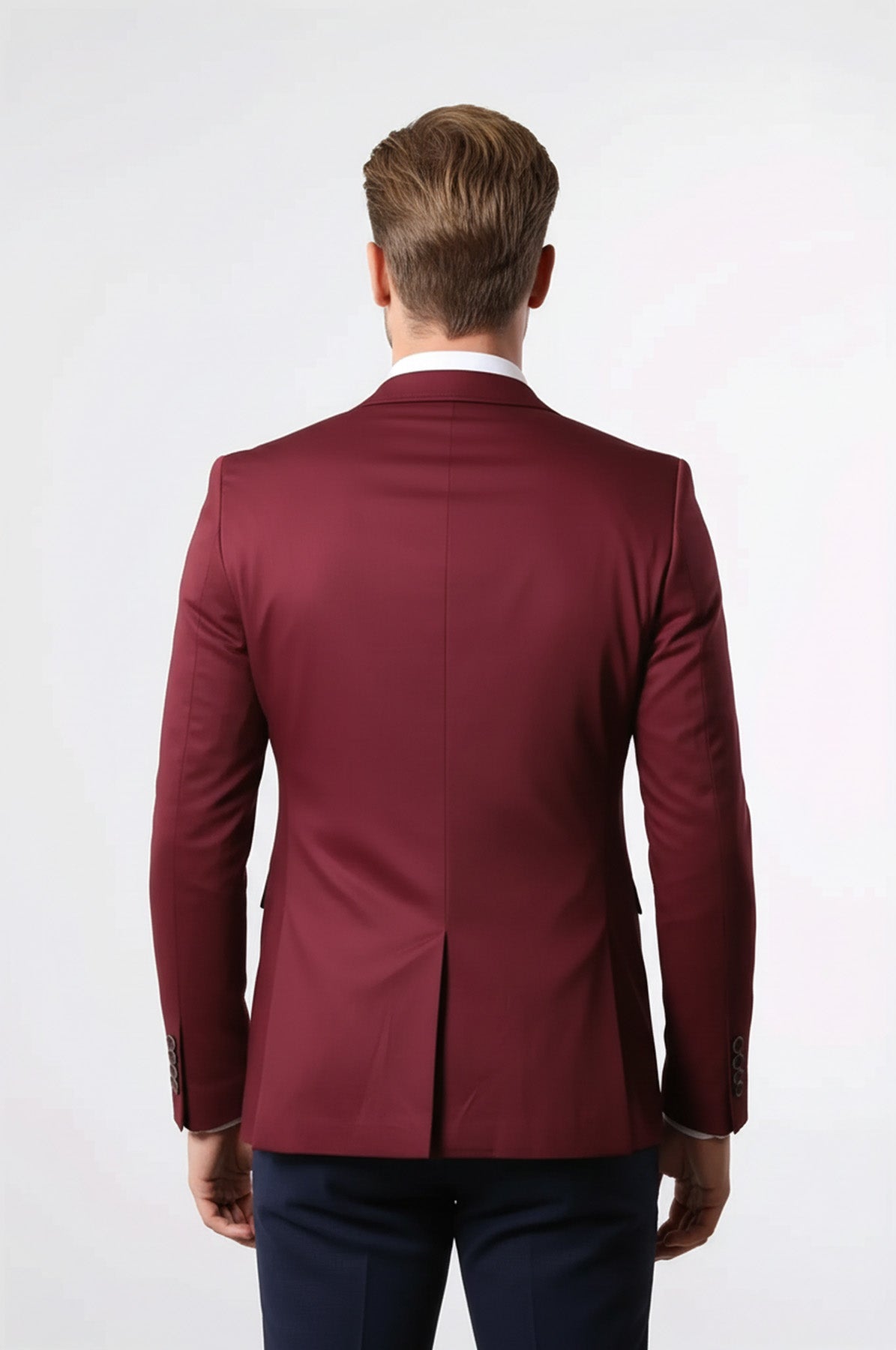 Elevate your wardrobe with this crew neck burgundy men blazer from Wessi. Expertly tailored with quality materials and precision craftsmanship, this blazer offers both style and comfort. The unique crew neck design sets it apart from traditional blazers while the rich burgundy color creates an impressive ensemble for any occasion. Perfect for versatile styling, this blazer is a must-have addition to any wardrobe.