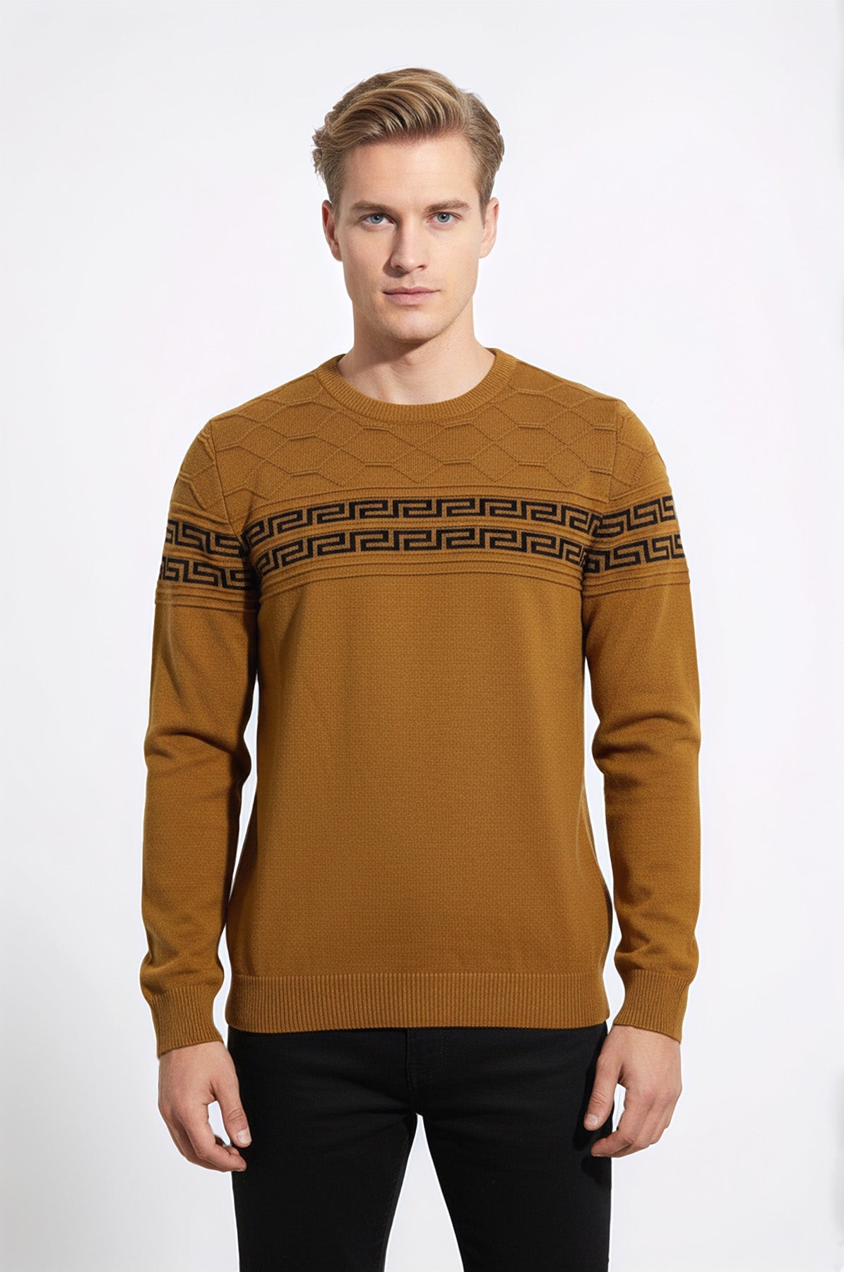 Crew Neck Knitwear Chest Patterned Over Camel - Wessi