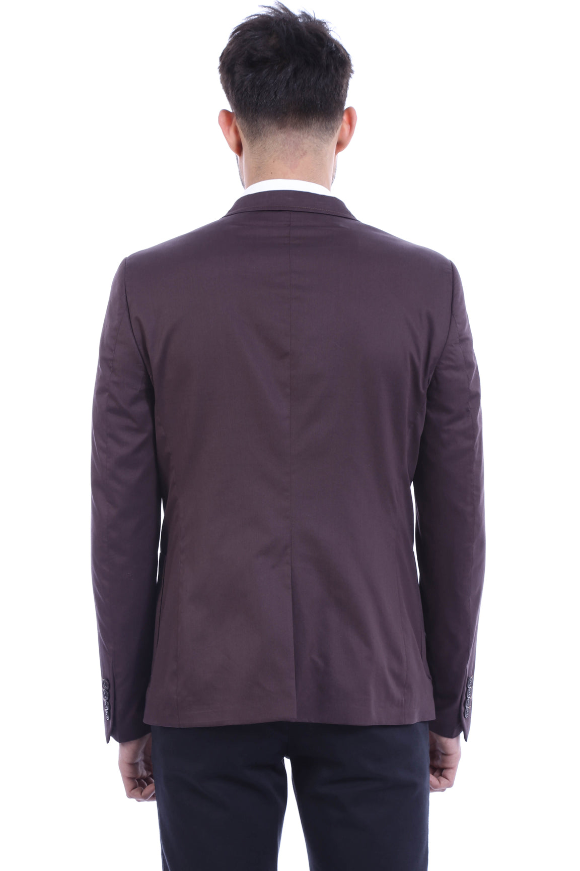 Double Buttons Mono Lapel Bag Pocket Brown Jacket-Wessi