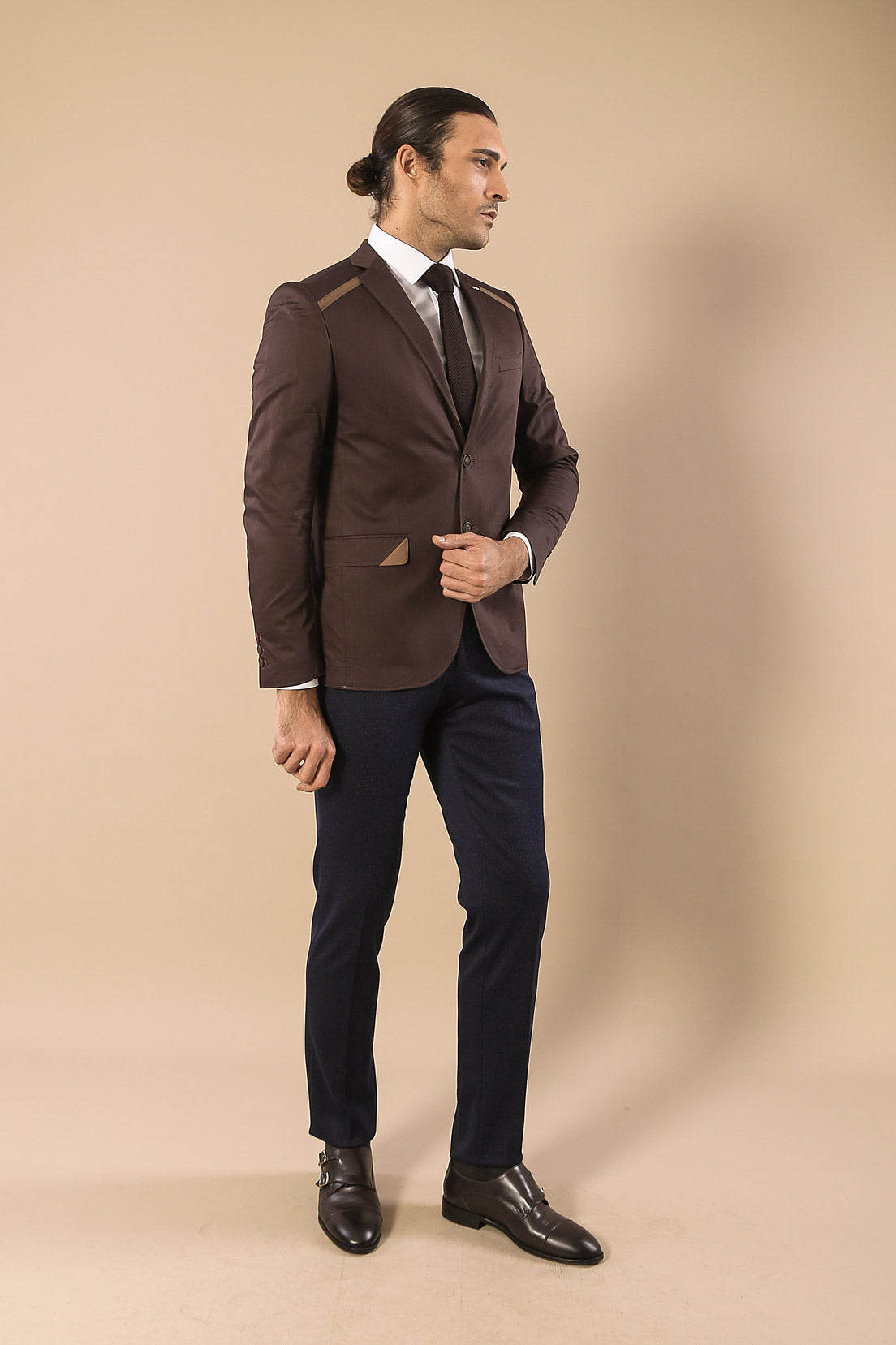 Double Buttons Mono Lapel Shoulder Piece Brown Jacket-Wessi