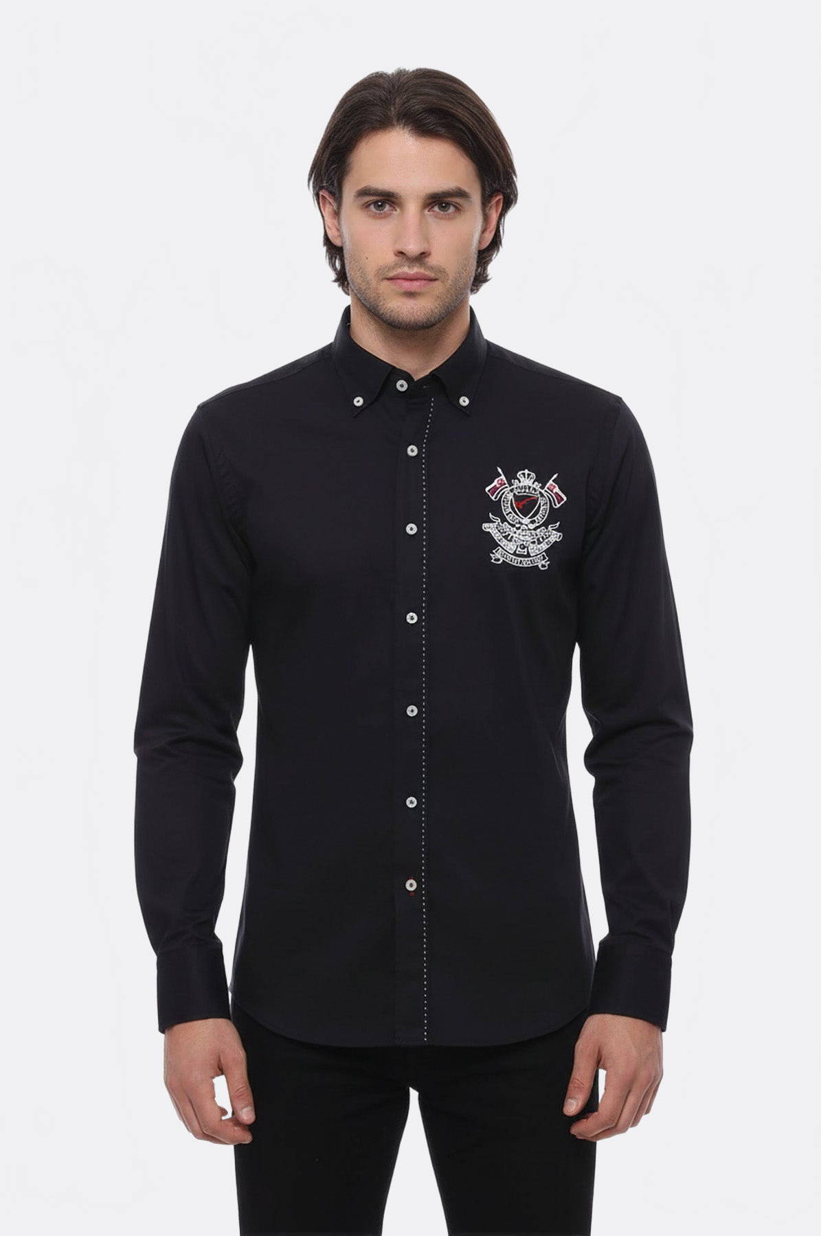 This Wessi Emblemed Long Sleeve Black Shirt is a versatile and stylish addition to any wardrobe. Made with high-quality materials, it offers both comfort and durability. Its sleek design and embroidered emblem add a touch of sophistication to any outfit. Perfect for any occasion, this shirt is a must-have for every fashion-forward individual.