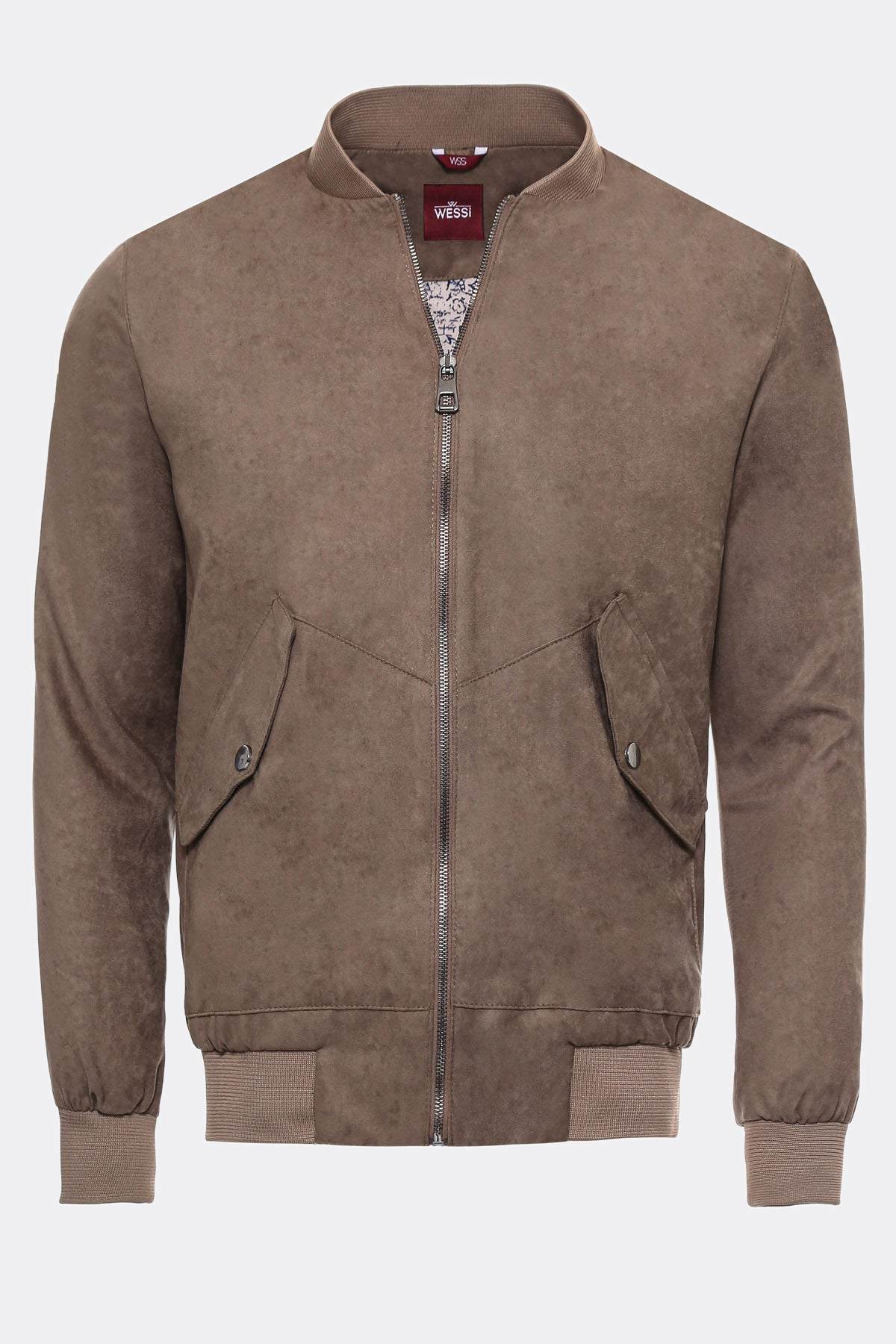 Flap Pockets Suede Light Brown Men Bomber Coat - Wessi