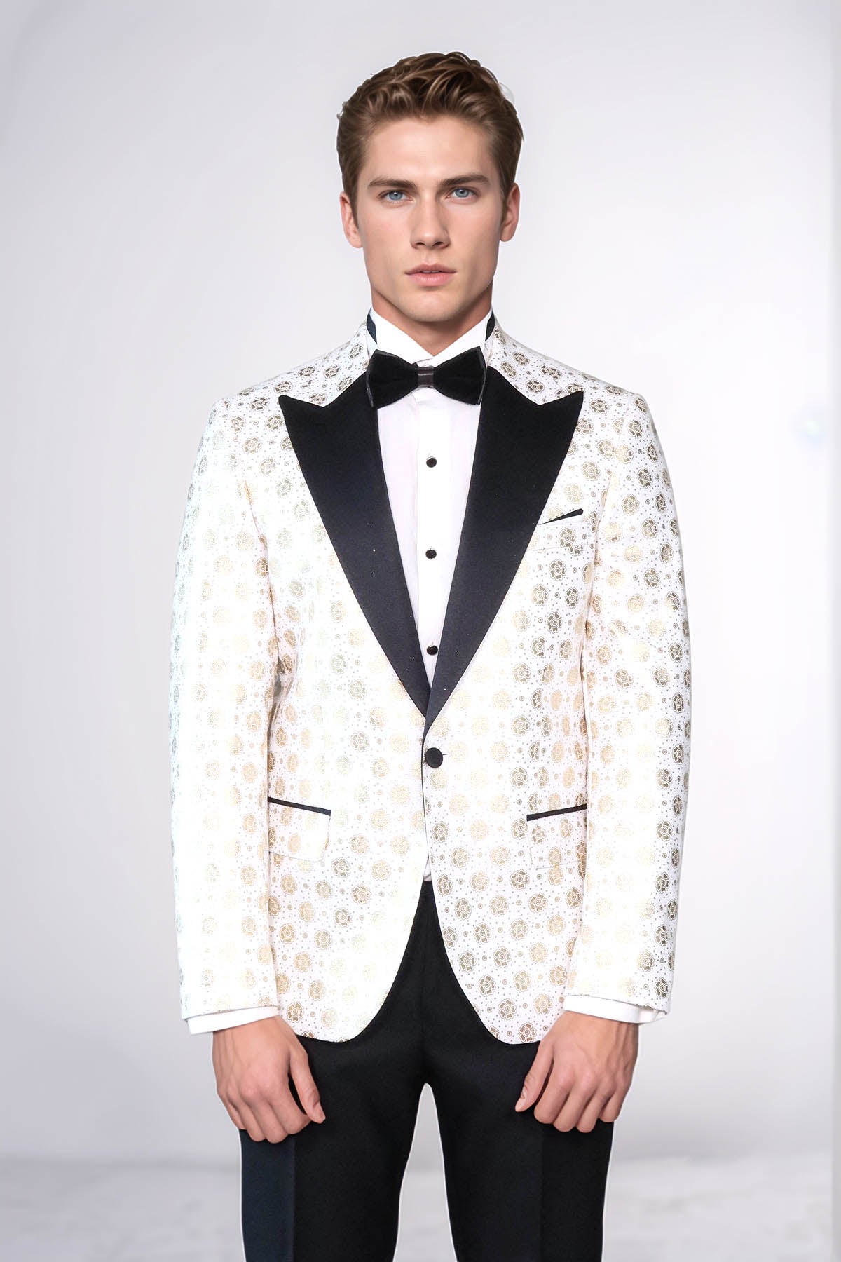 Floral Patterned Peak Lapel White Men Wedding Tuxedo Blazer - Wessi