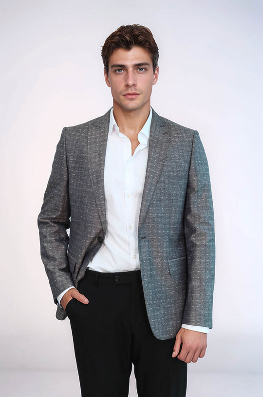 Expertly crafted from high-quality linen, the Grey Linen Dot Patterned Jacket by Wessi boasts a timeless and versatile design. With its dot pattern and neutral grey color, this jacket can be dressed up or down for any occasion. Elevate your style and comfort with this must-have piece.