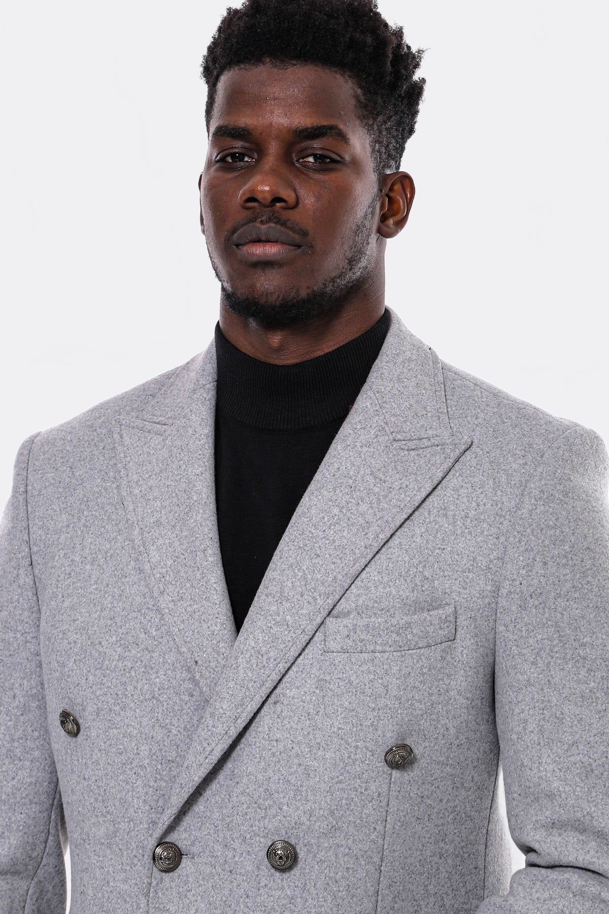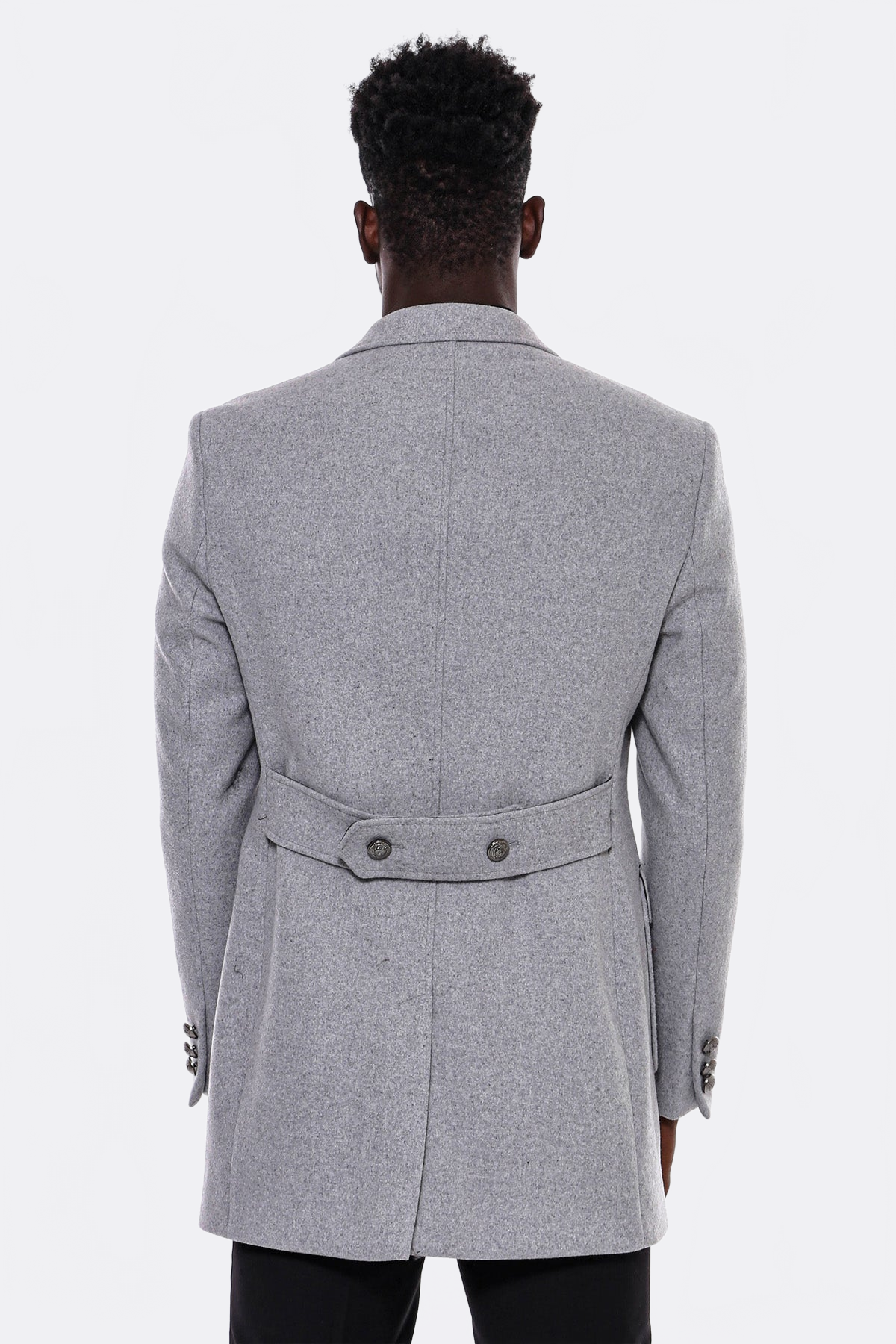 Grey Metal Buttoned Double Breasted Long Coat - Wessi