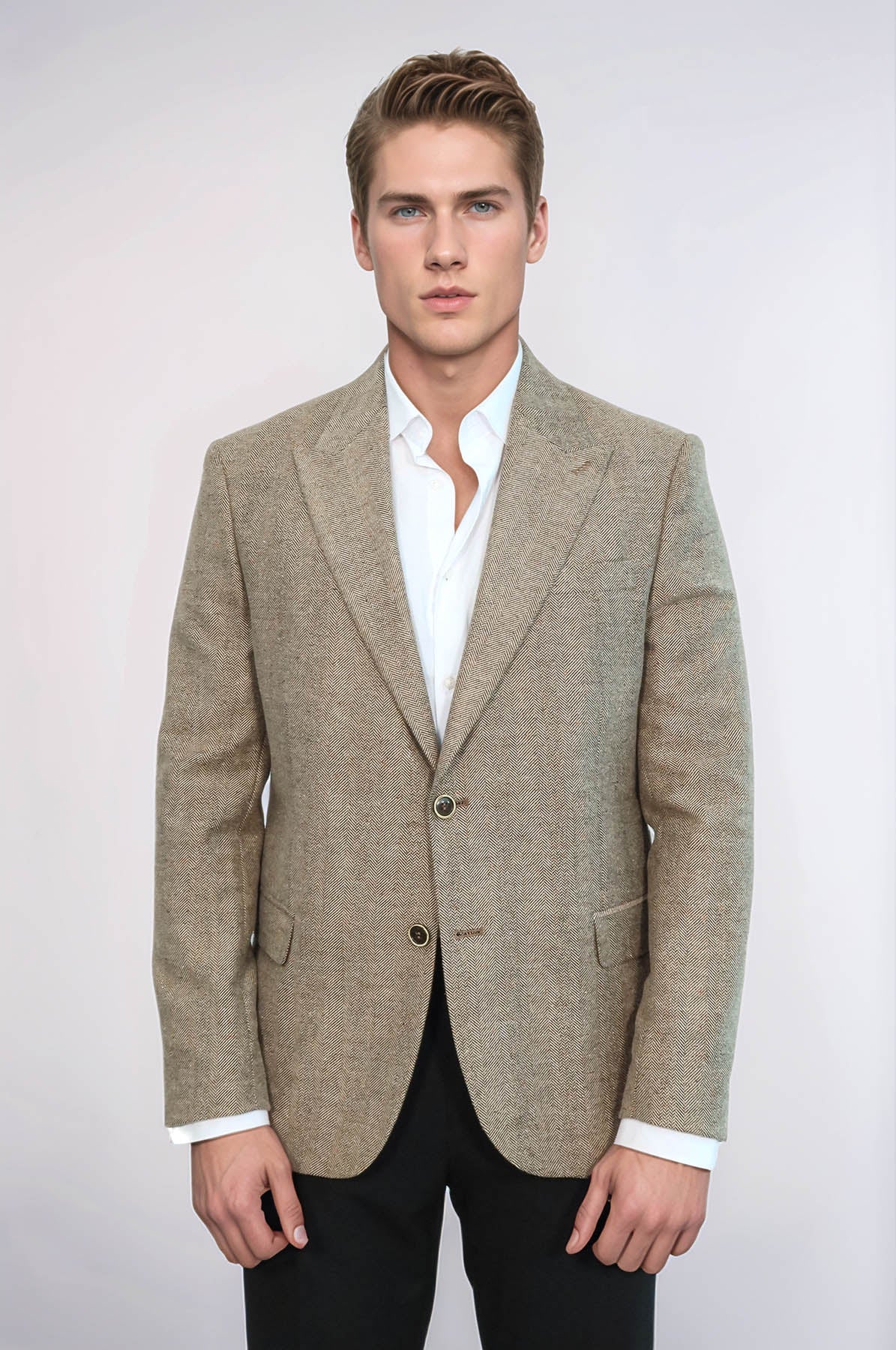 Houndstooth Pattern Wool Cream Men Blazer - Wessi
