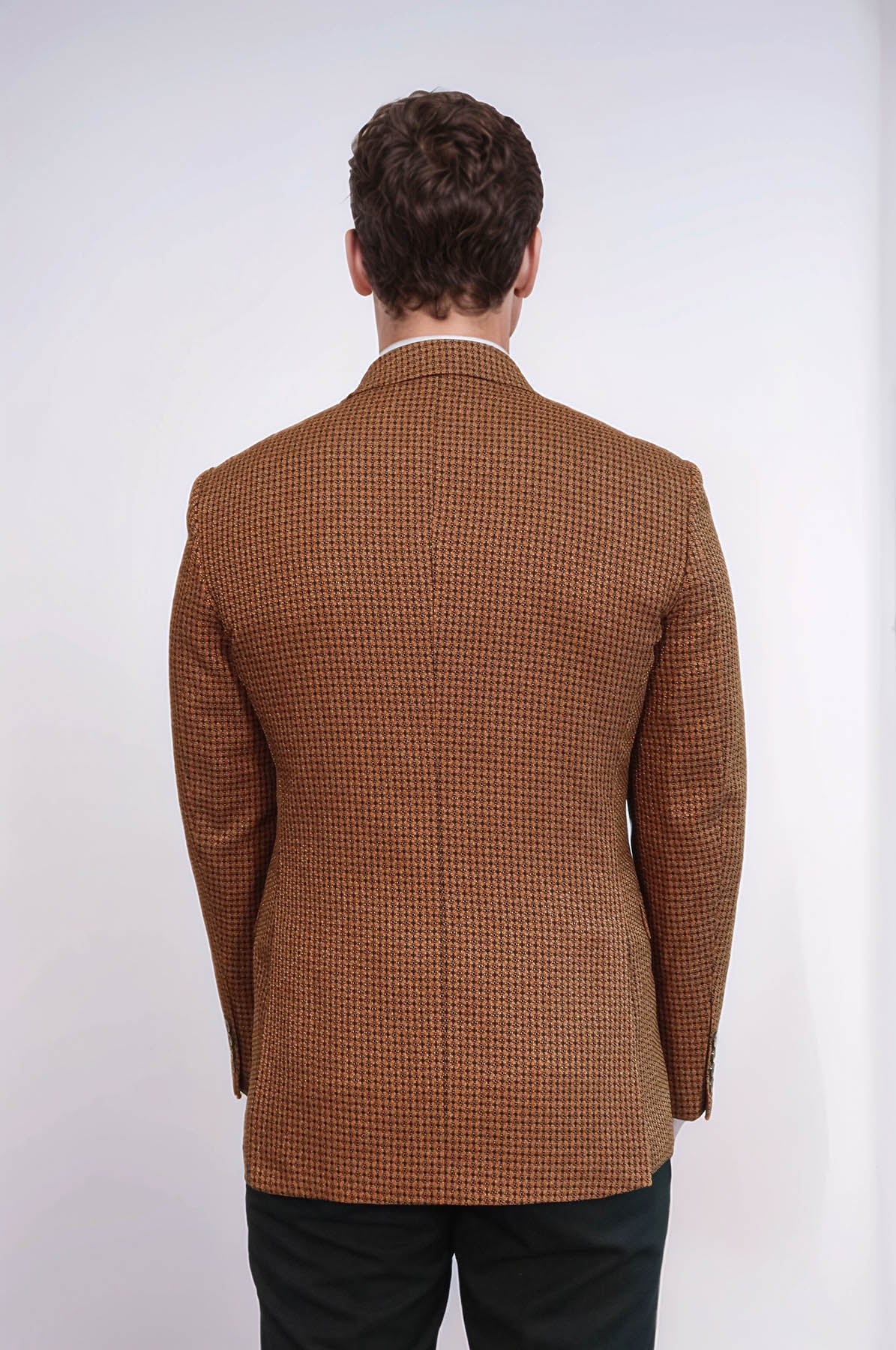 Houndstooth Patterned Tawny Men Double Breasted Blazer - Wessi