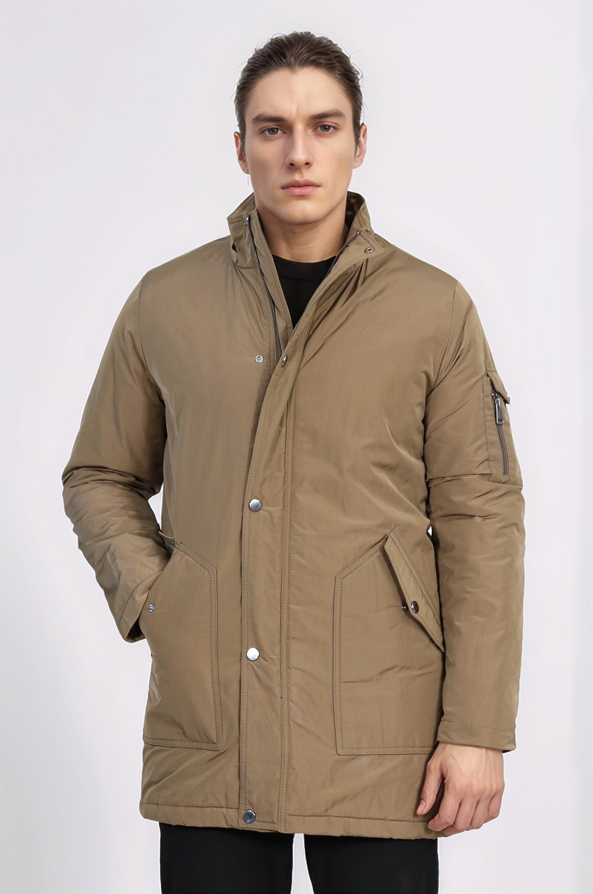 Light Brown Pocket Hooded Men's Coat - Wessi