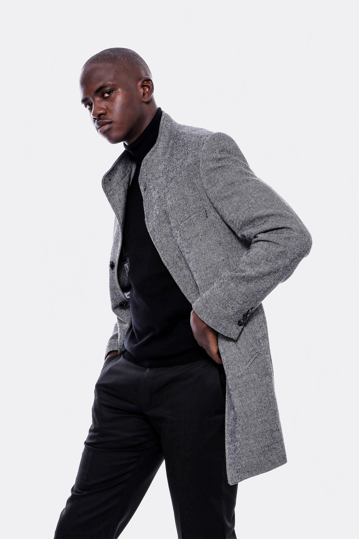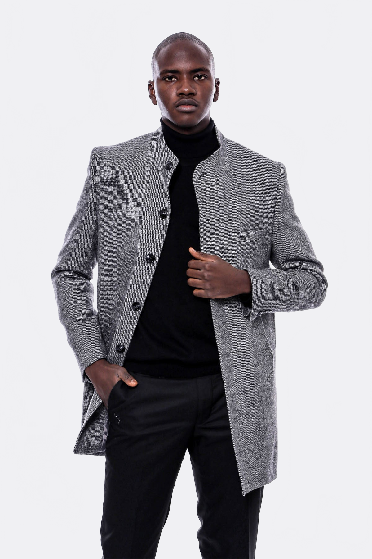 Mandarin Collar Grey Short Coat - Wessi