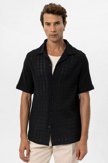 Embrace the perfect blend of style and comfort with the Men's Black Camp Collar Woven Shirt - Wessi, which features a unique combination of classic tailoring and modern flair. Whether you're heading to a business lunch, a casual day out, or a formal event, this piece adapts effortlessly to your style needs. Don’t miss out on the opportunity to own this exceptional piece.