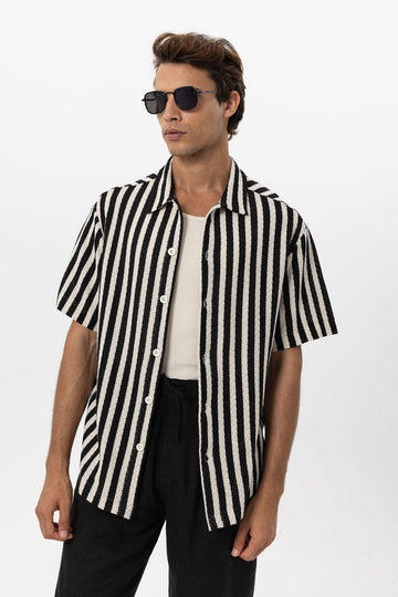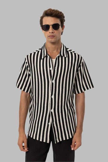 Discover the versatility of the Men's Black Oversized Knit Striped Shirt - Wessi, designed to stands out with its impeccable design, perfect for both casual and formal occasions. Ideal for layering during cooler months or wearing solo in warmer weather, this versatile piece is a year-round essential. Don’t miss out on the opportunity to own this exceptional piece.