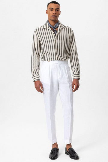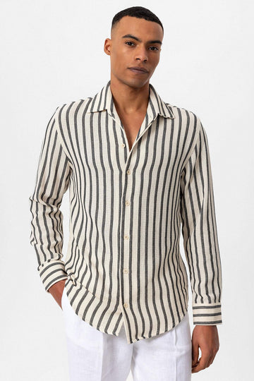 Unveil the charm of the Men's Black Striped Knit Long-Sleeve Shirt - Wessi, an essential piece that is meticulously crafted to deliver unparalleled comfort and elegance. Pair it with your favorite trousers for a refined look or dress it down with jeans for a more relaxed vibe. Let this garment be the cornerstone of your seasonal wardrobe.
