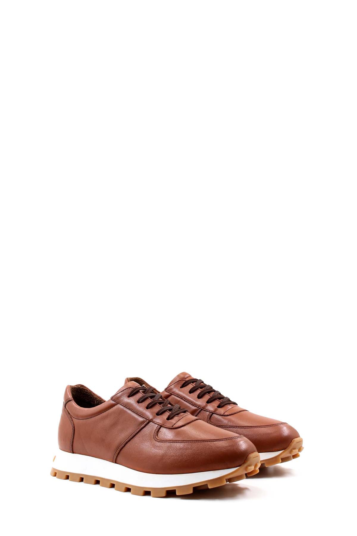 Men's Brown Leather Lace-Up Sneakers with Cushioned Sole - Wessi
