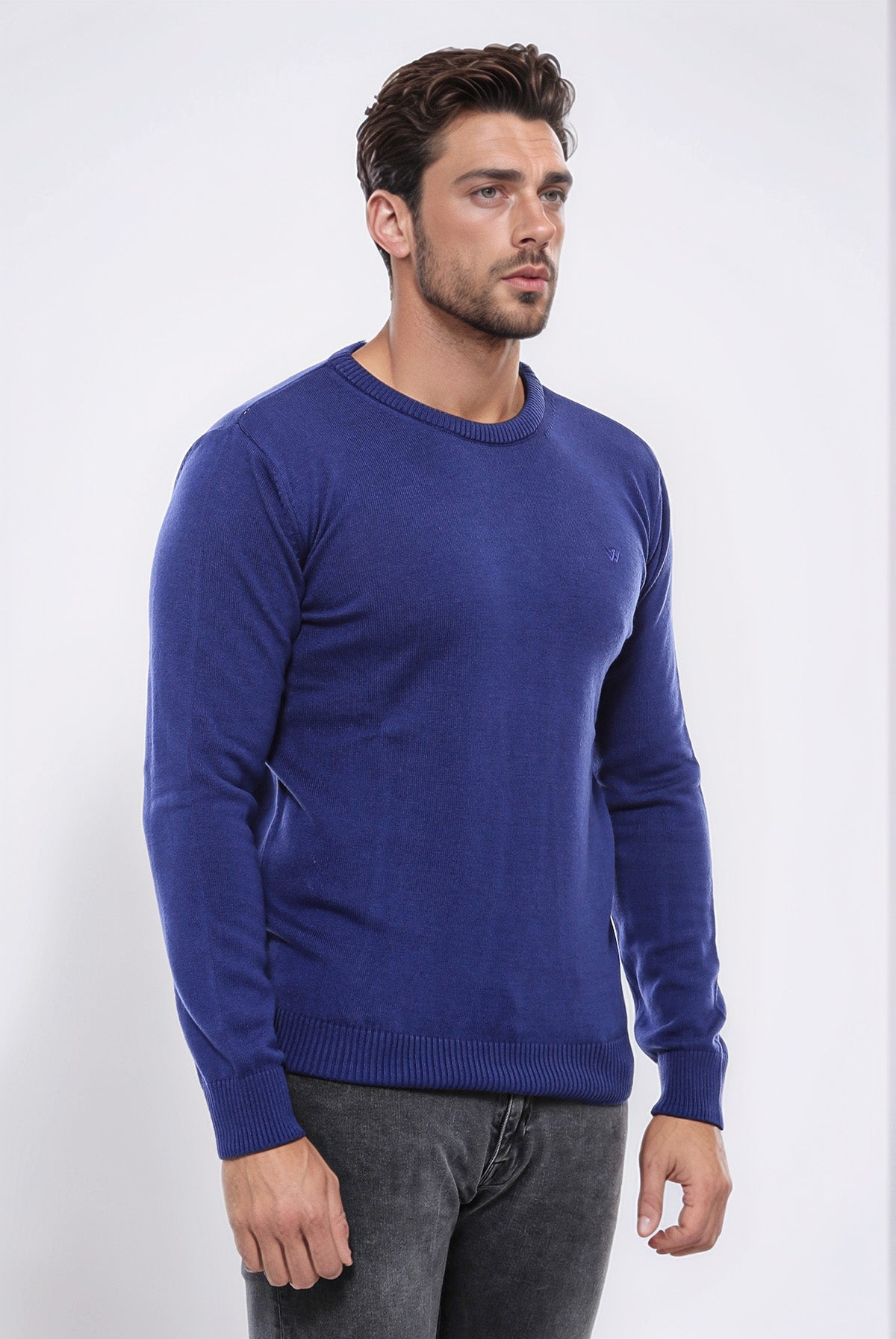 Crafted with precision and style, this Navy Blue Crew Neck Knitwear from Wessi is a must-have for any fashion-forward individual. Made from high-quality materials, this Knitwear features an intricately embroidered design on the front, adding a touch of sophistication to any outfit. Perfect for any occasion, elevate your wardrobe with this versatile piece.