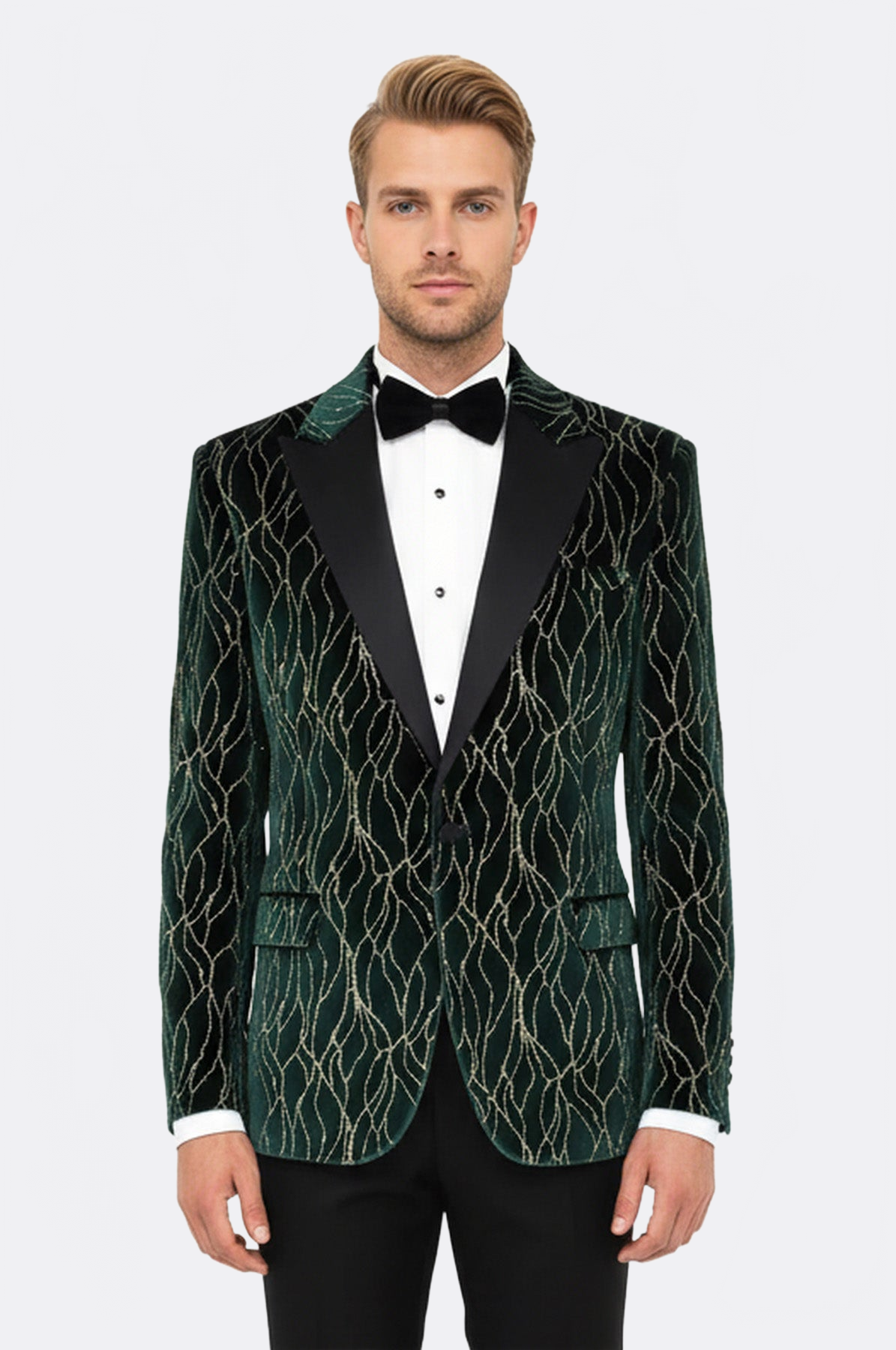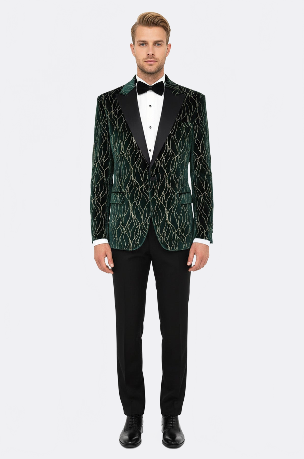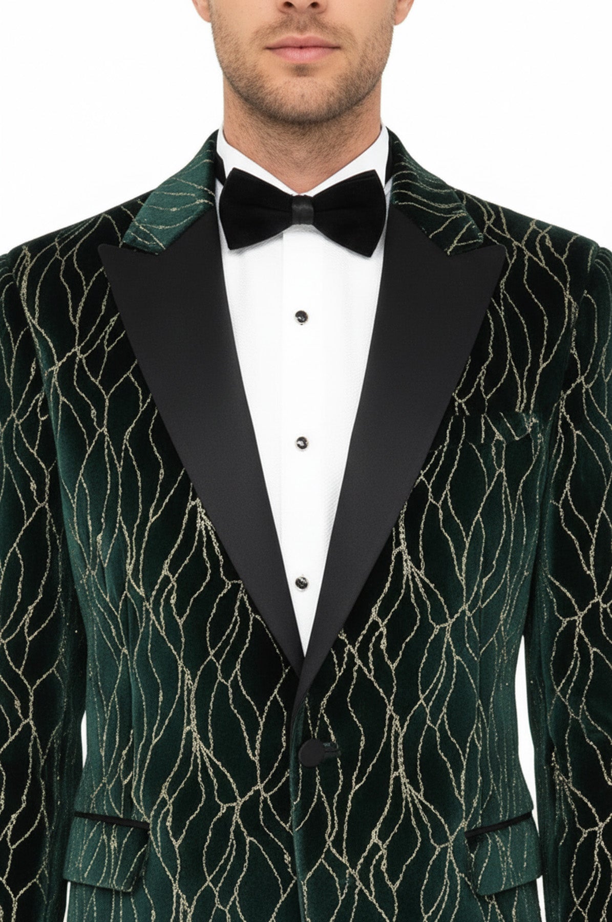 Patterned Dark Green Velvet Men Singer Tuxedo Blazer - Wessi
