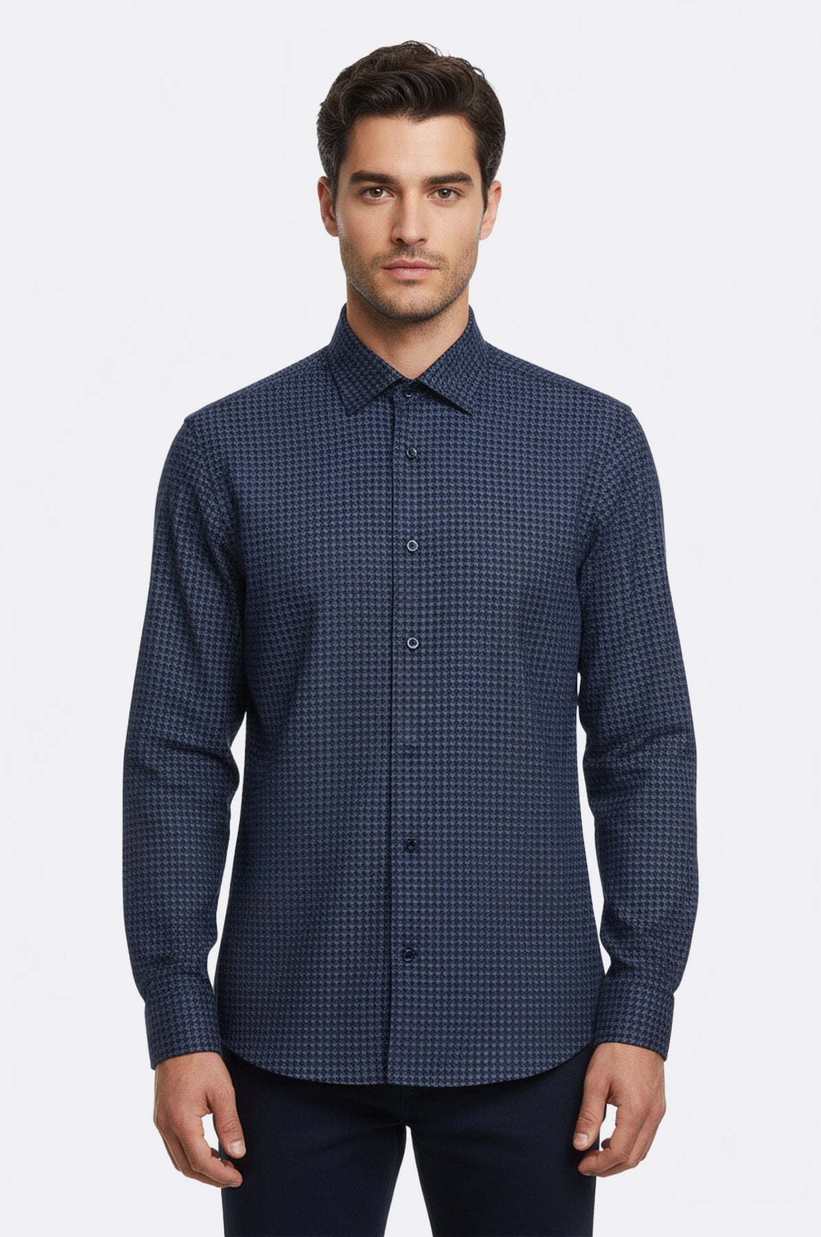 Patterned Slim Fit Navy Blue Men Shirt - Wessi