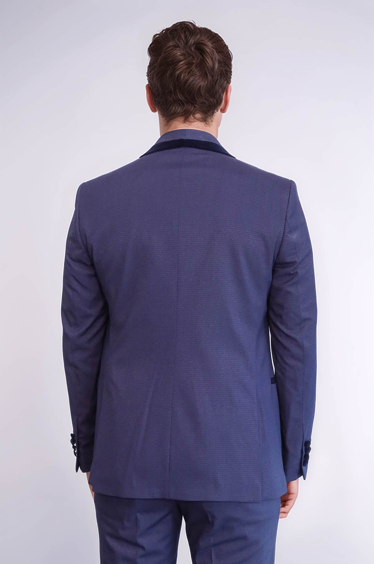 Patterned Velvet Lapel Navy Blue Tuxedo - Wessi