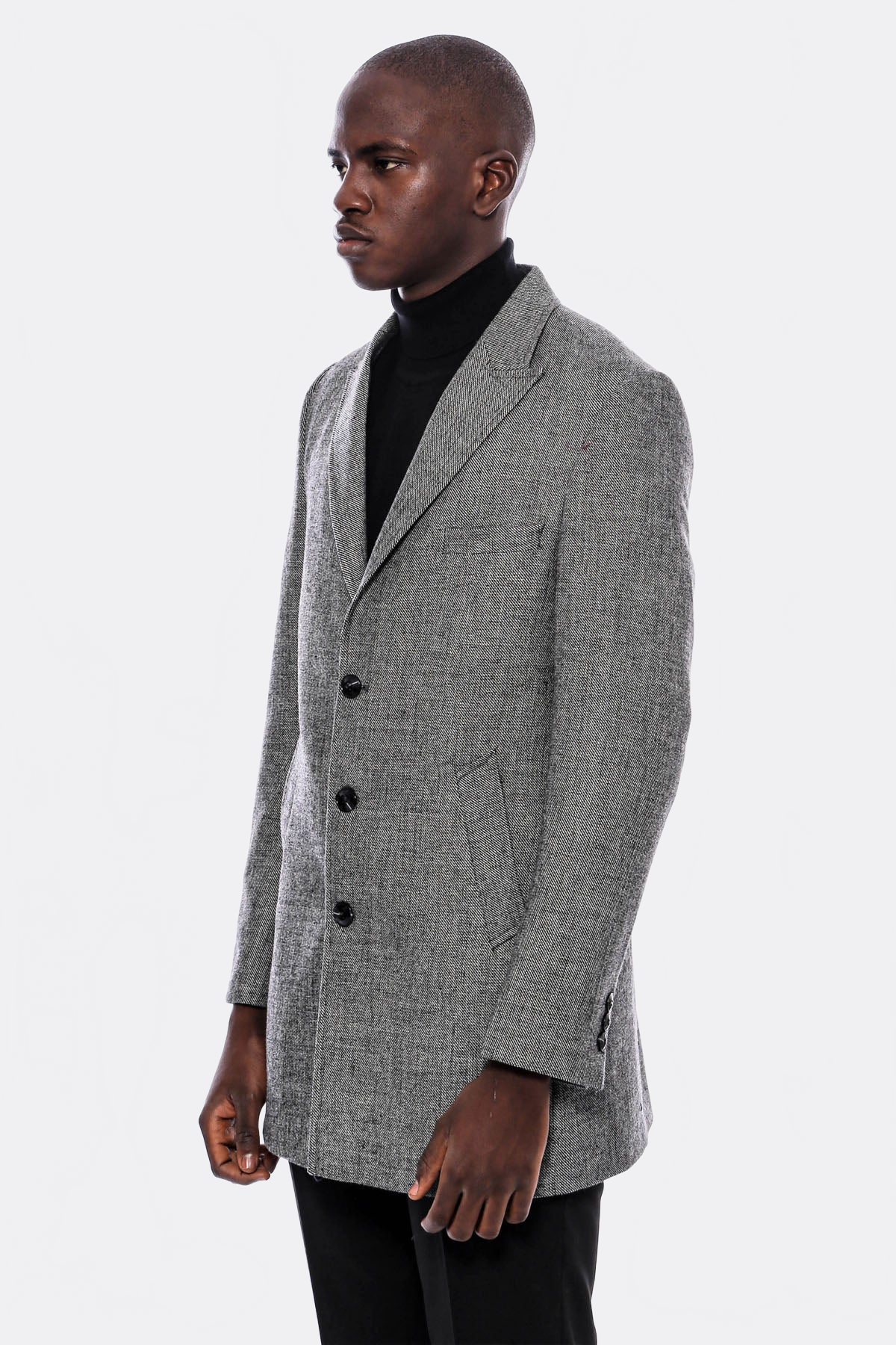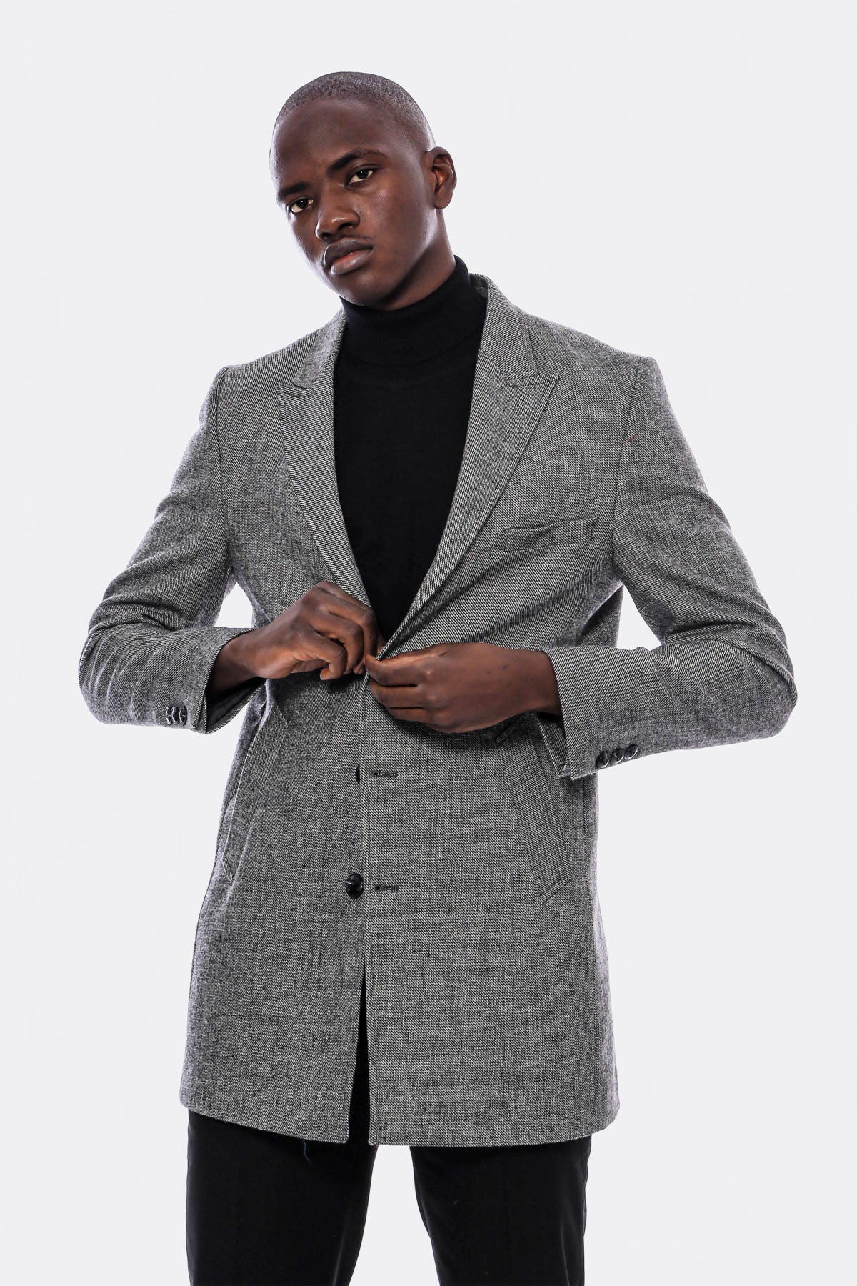 A coat is one of the stylish pieces of clothing that you can wear both for formal events and business life. Available in classic cuts and modern designs, these coats allow you to express your style freely. A symbol of elegance and style, this gray self-patterned men's coat draws attention with its pointed collar design and two-pocket details. Its three-button fastening offers both a classic and modern style. This coat will complement your elegance in any season and at any stylish event. You can combine this gray coat with a white shirt and a navy blue tie for a special elegance. You can choose a dark-colored slim-fit trousers or classic cut wool trousers underneath. You can emphasize your style with black leather oxford shoes or loafers. Don't forget to accessorize with an elegant watch and cufflinks. This outfit is suitable for all kinds of stylish occasions, from business meetings to special events, and will create an elegant image for you.