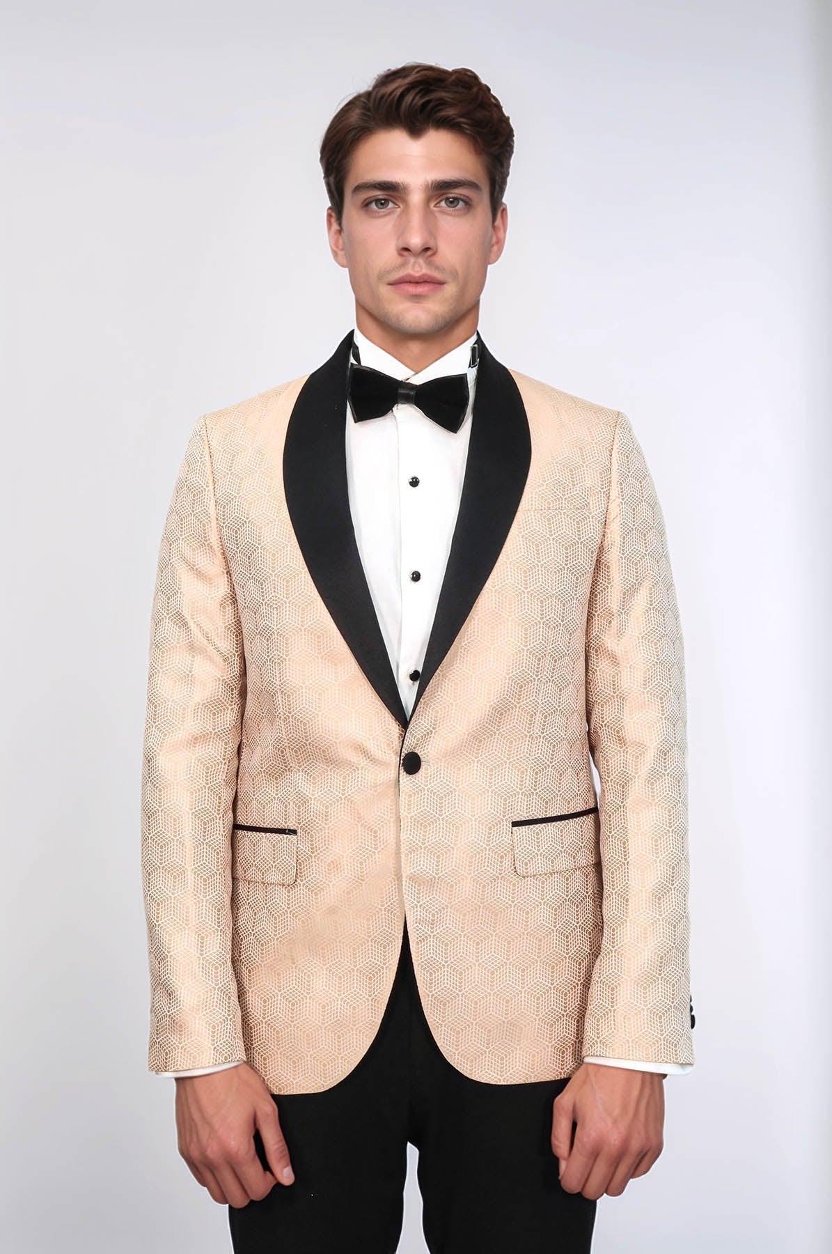 Pentagon Patterned Shawl Lapel Cream Men Dinner Jacket - Wessi