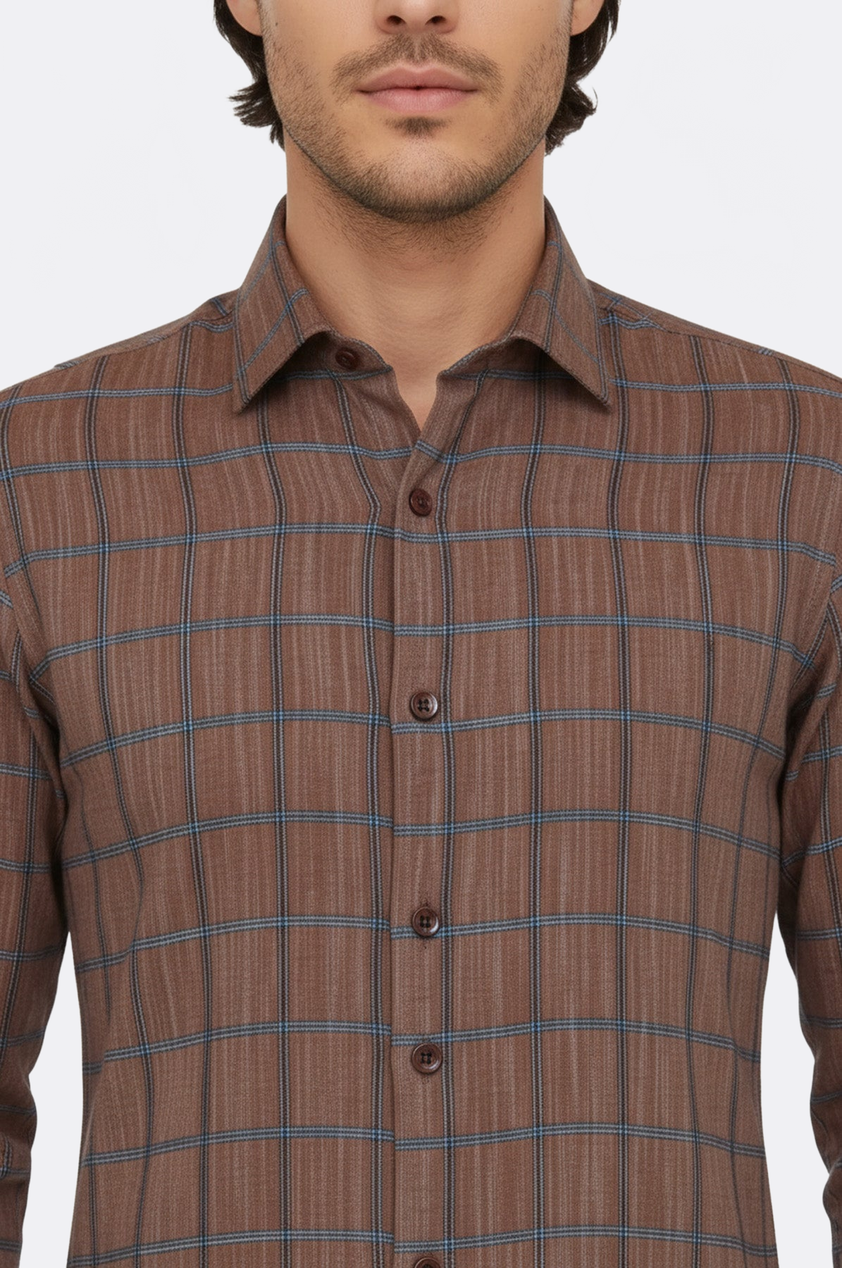 Plaid Slim Fit Brown Men Shirt - Wessi