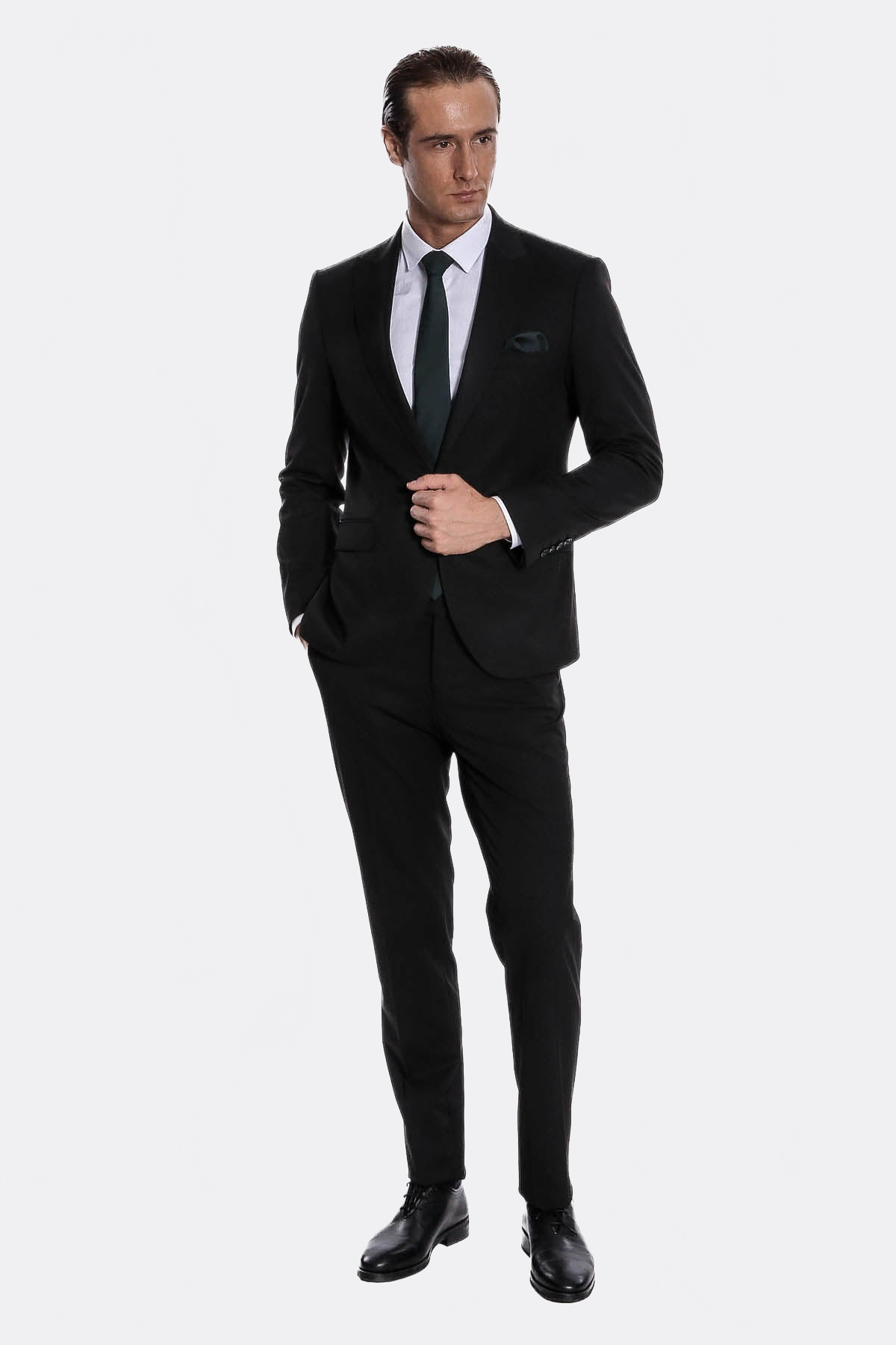 Plain 2 Piece Slim Fit Black Men Suit - Wessi