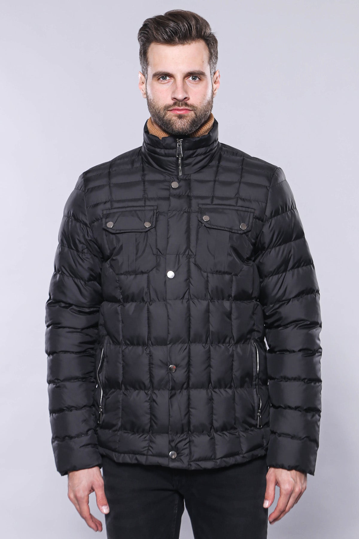 Quilted Black Men Winter Coat - Wessi