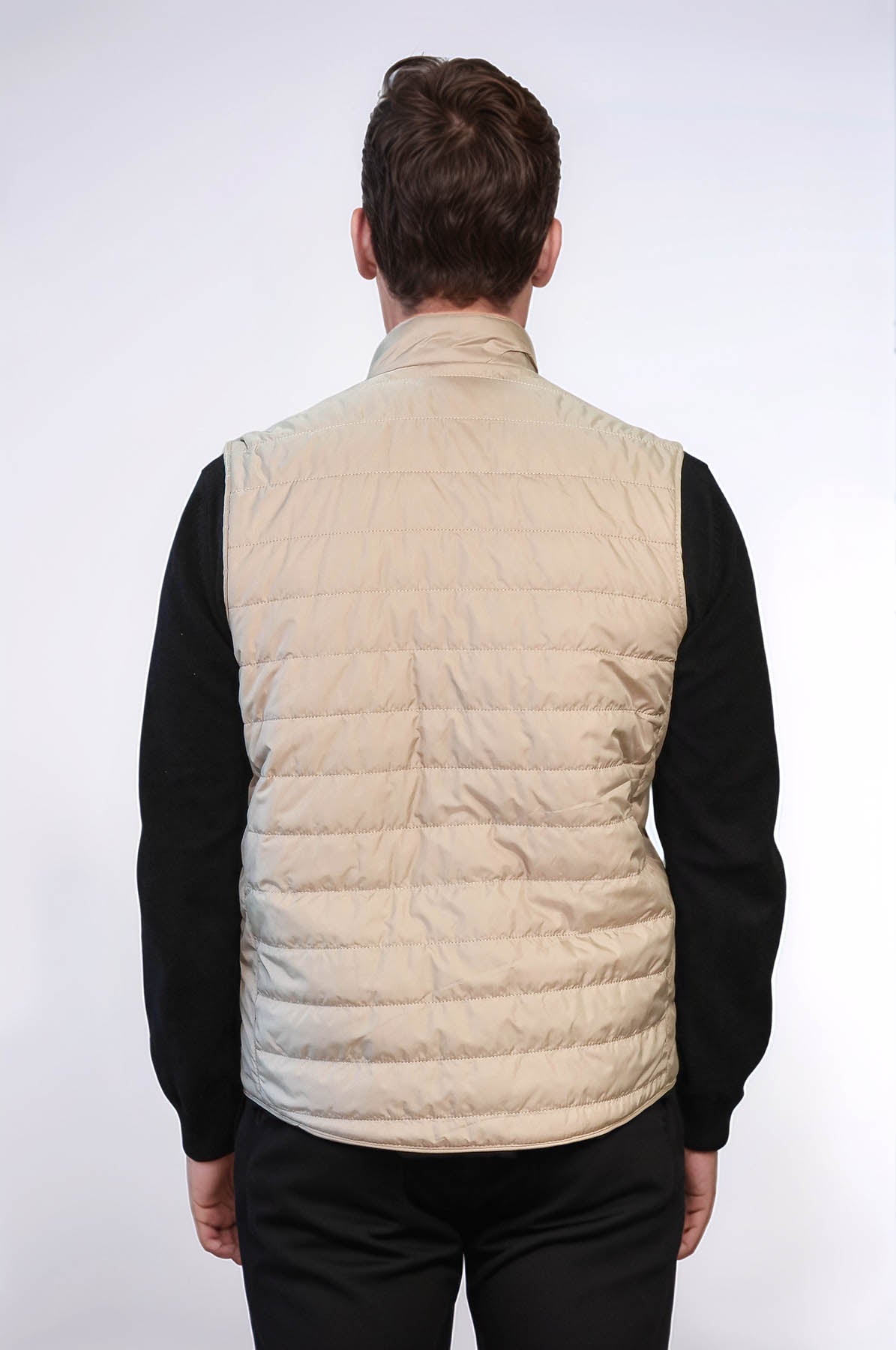 Quilted Sleeveless Beige Men Down Vest - Wessi