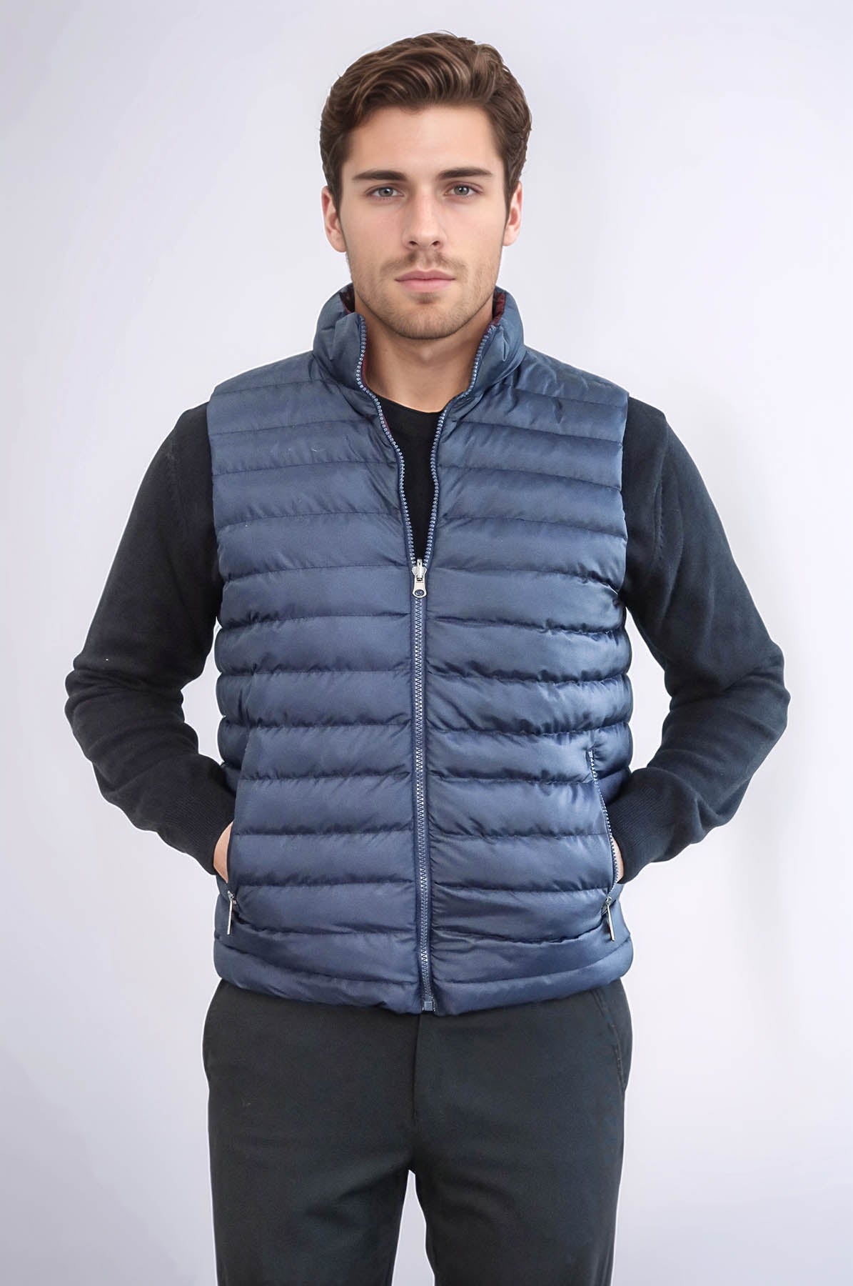 Reversible Puffer Sax Blue Men Down Vest - Wessi