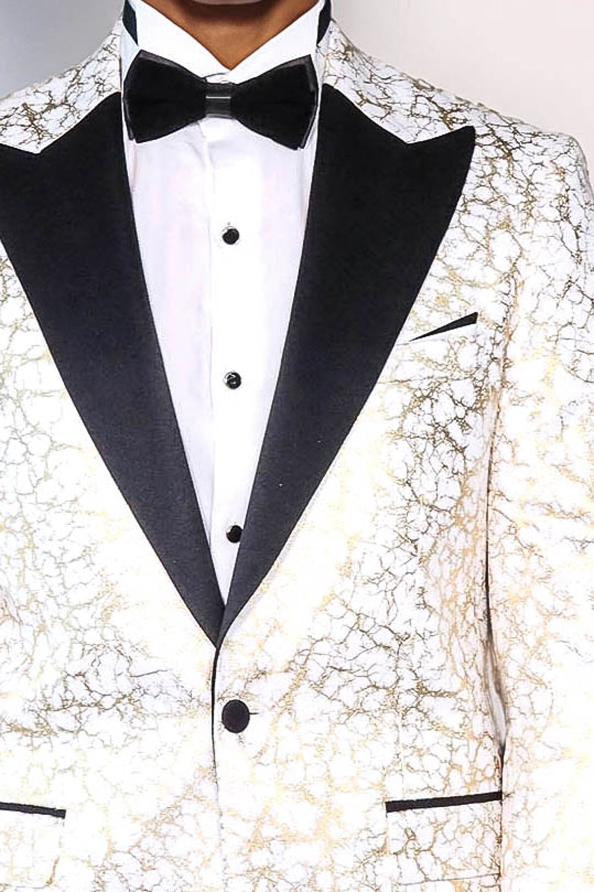 Root Pattern Peak Lapel White Men Dinner Jacket - Wessi