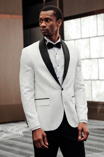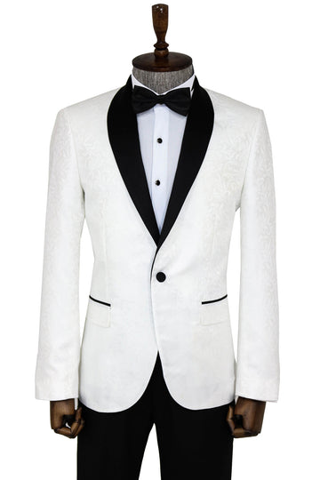 Shawl Lapel Floral Patterned White Men Wedding Tuxedo Blazer - Wessi