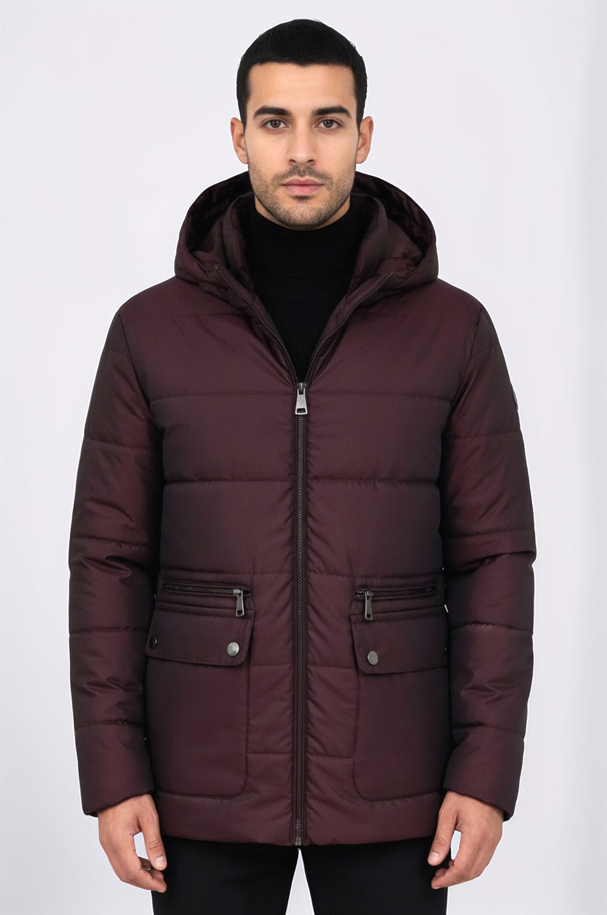 Slim Fit Hooded Burgundy Men Coat - Wessi