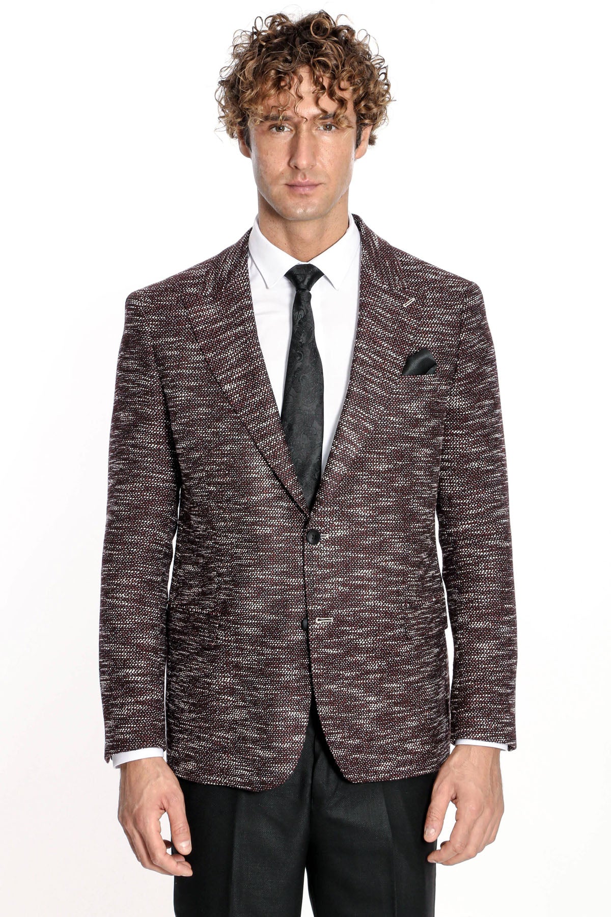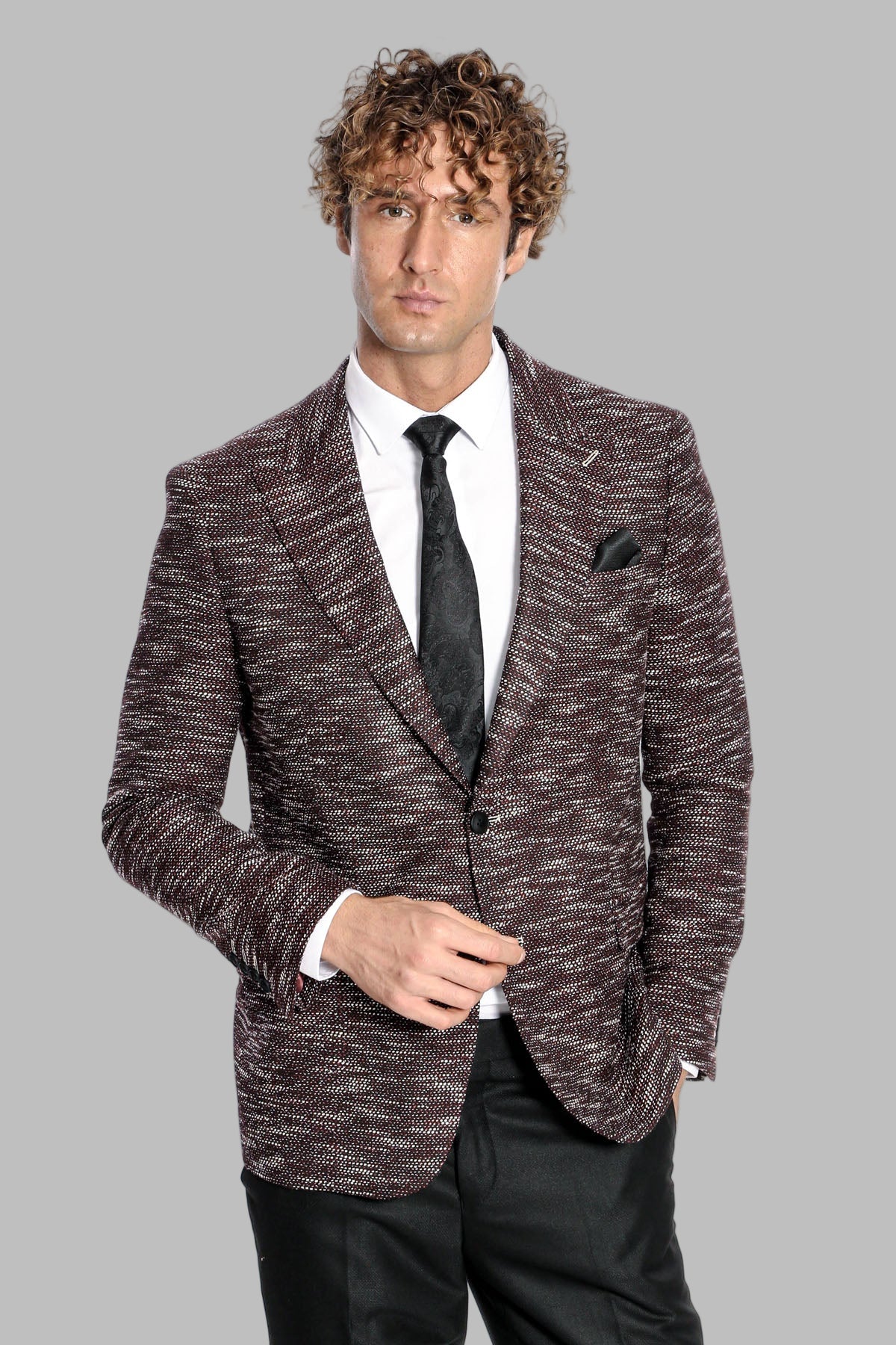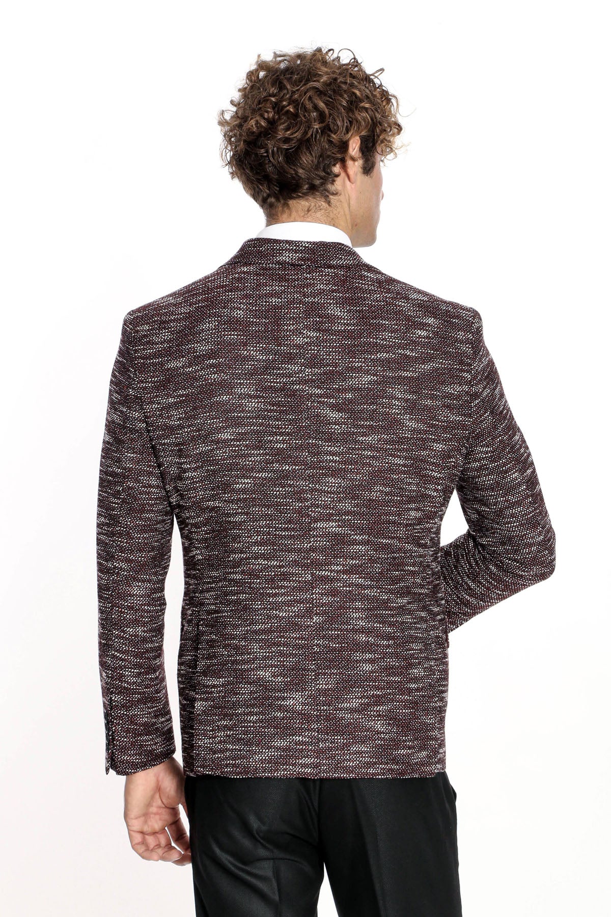 Slim Fit Patterned Sport Burgundy Men Blazer - Wessi