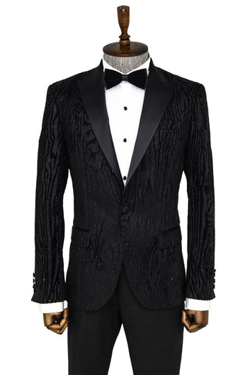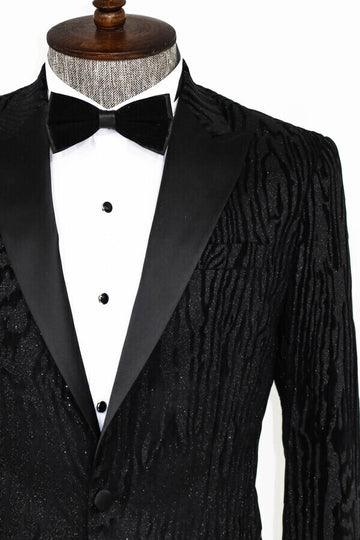 Slim Fit Zebra Patterned Black Prom Blazer - Wessi