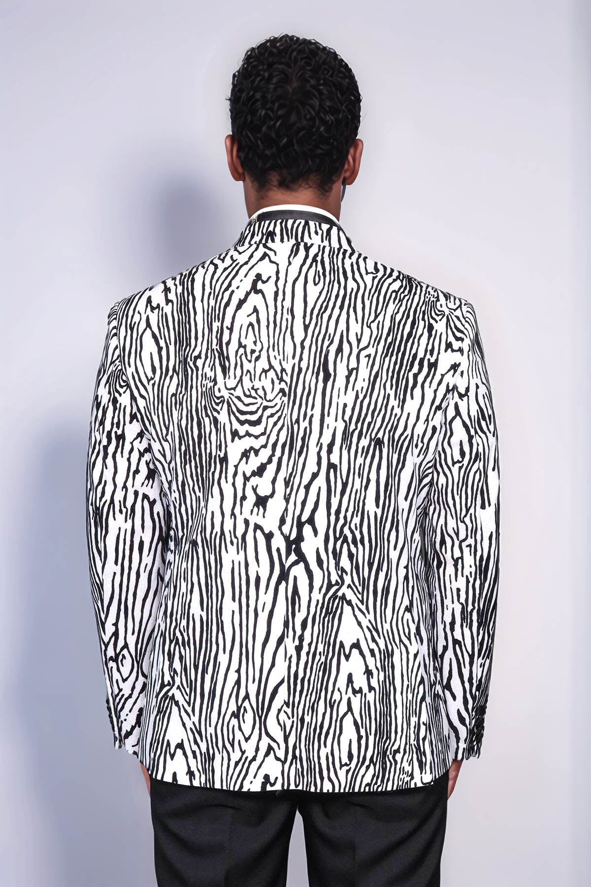 Slim Fit Zebra Patterned White Men Party Blazer - Wessi