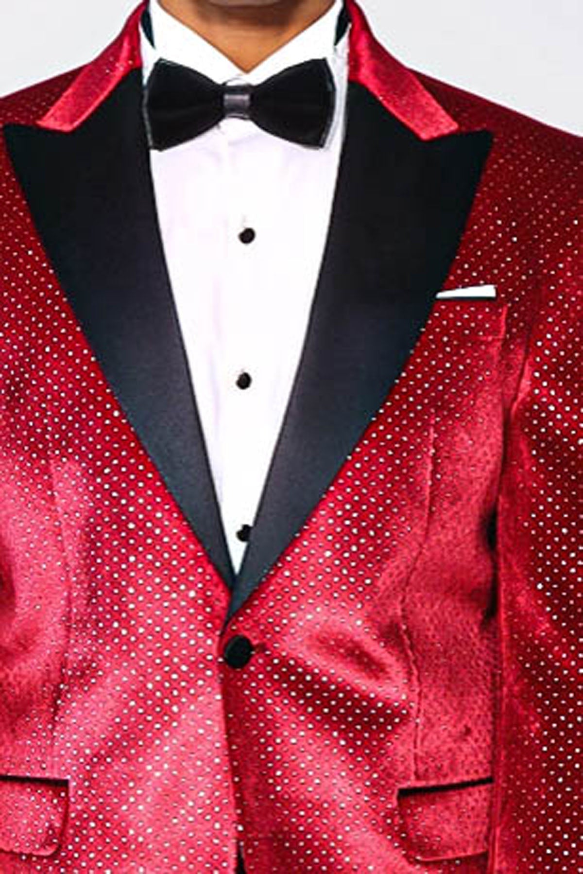 Sparkling Dotted Peak Lapel Men's Burgundy Tuxedo Jacket - Wessi