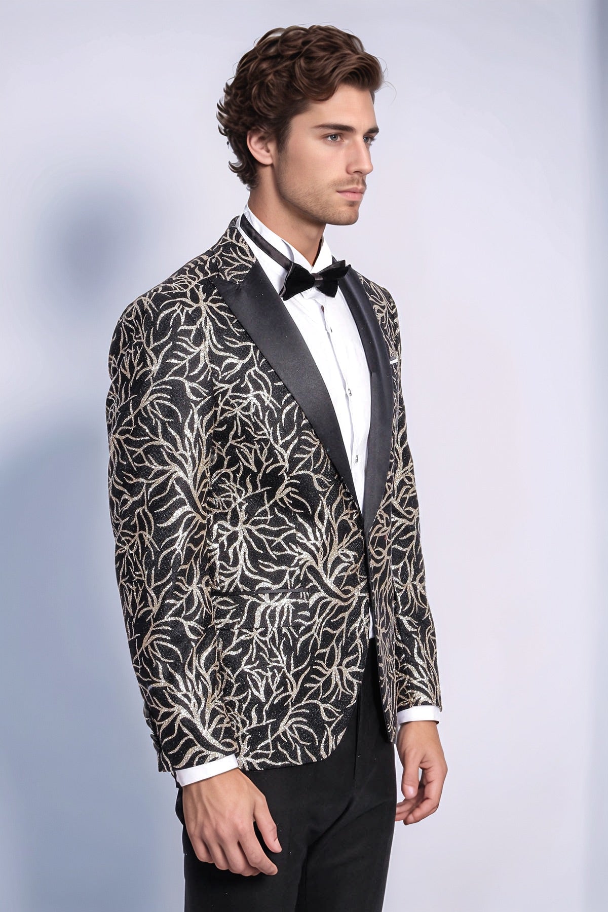 Sparkling Ivy Patterned Slim Fit Black Men Dinner Jacket - Wessi