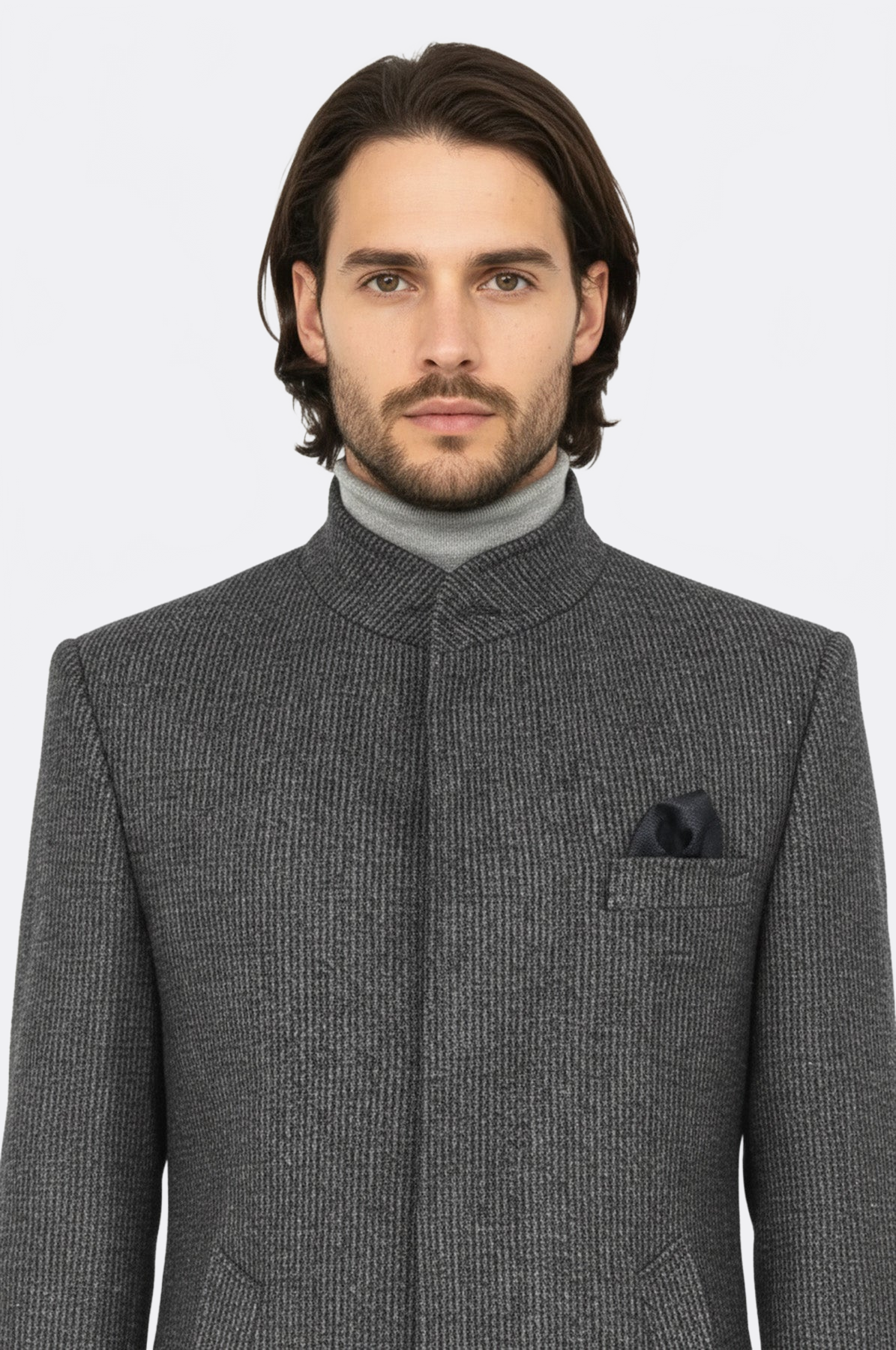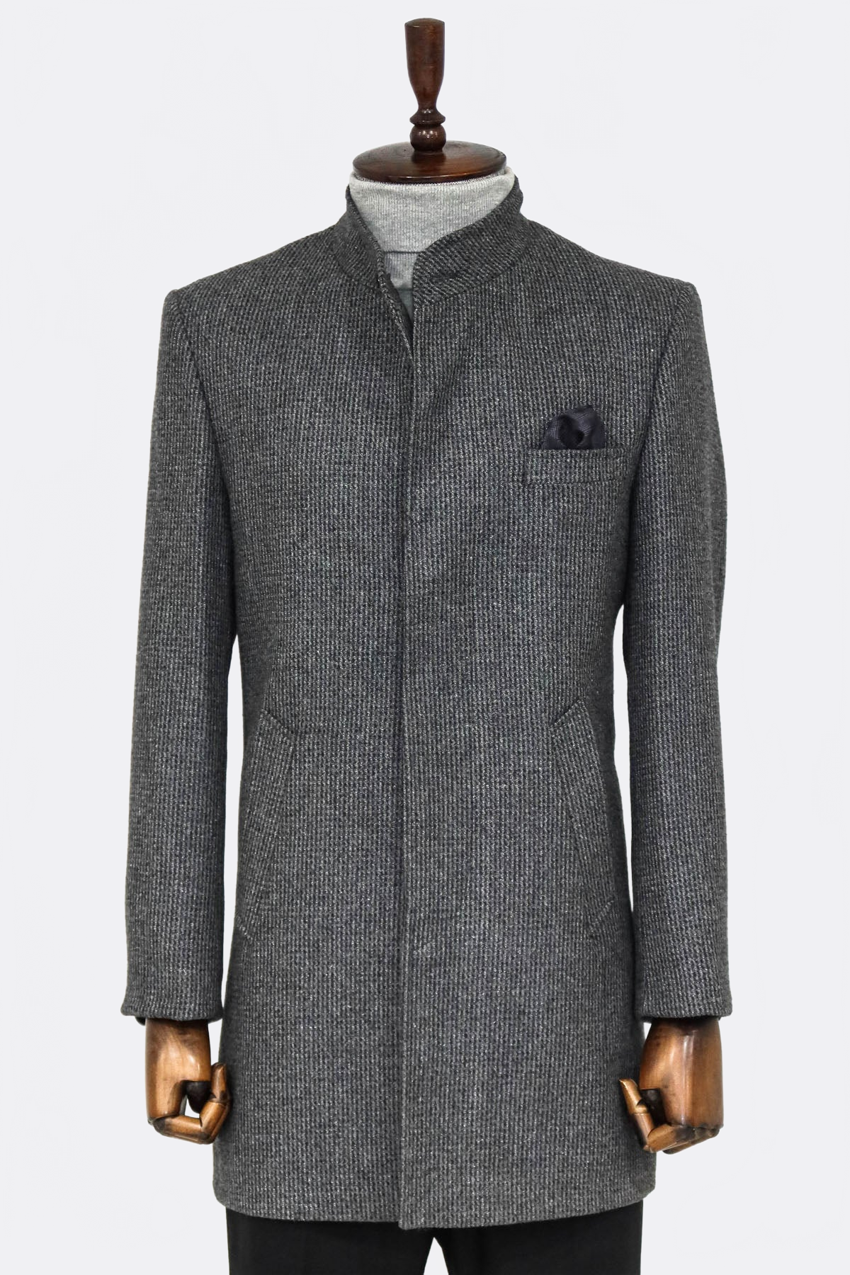 Standing Collar Patterned Grey Men Coat - Wessi