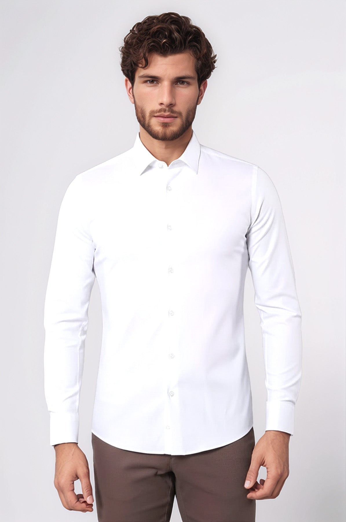 Stretch Cotton White Men Dress Shirt | Wessi