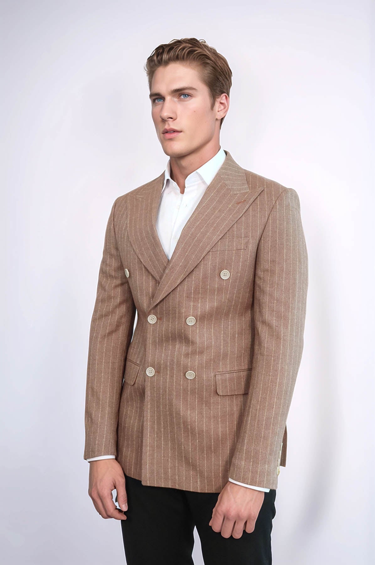 Striped Double Breasted Beige Men Blazer - Wessi