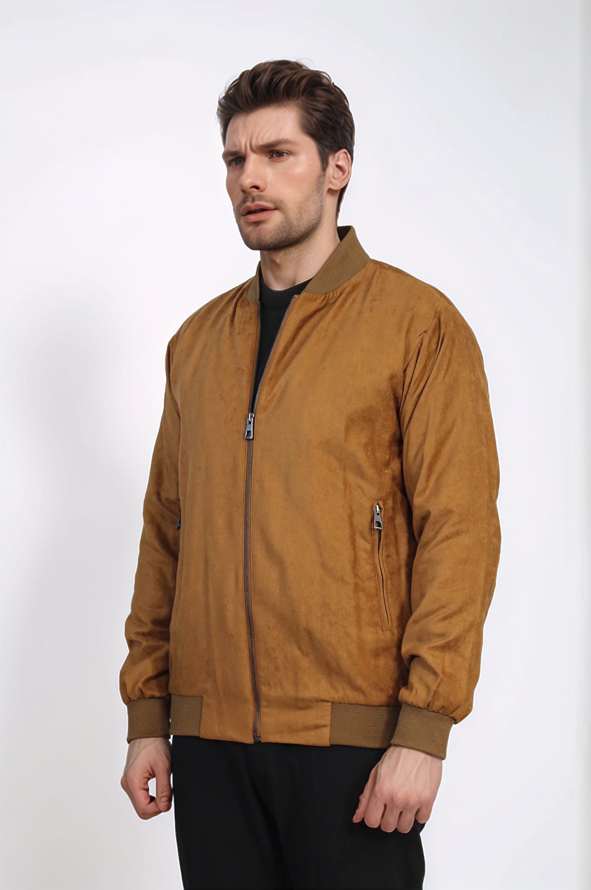 - Bomber Jacket: Plain zippered pocket tan men's bomber jacket - comfortable and elegant design
