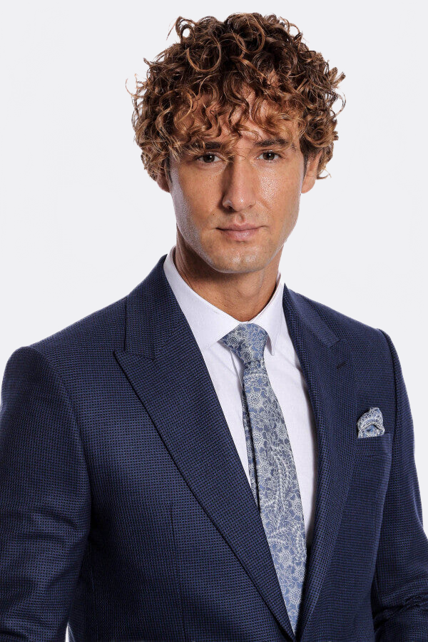 Two Piece Patterned Navy Blue Men Suit - Wessi