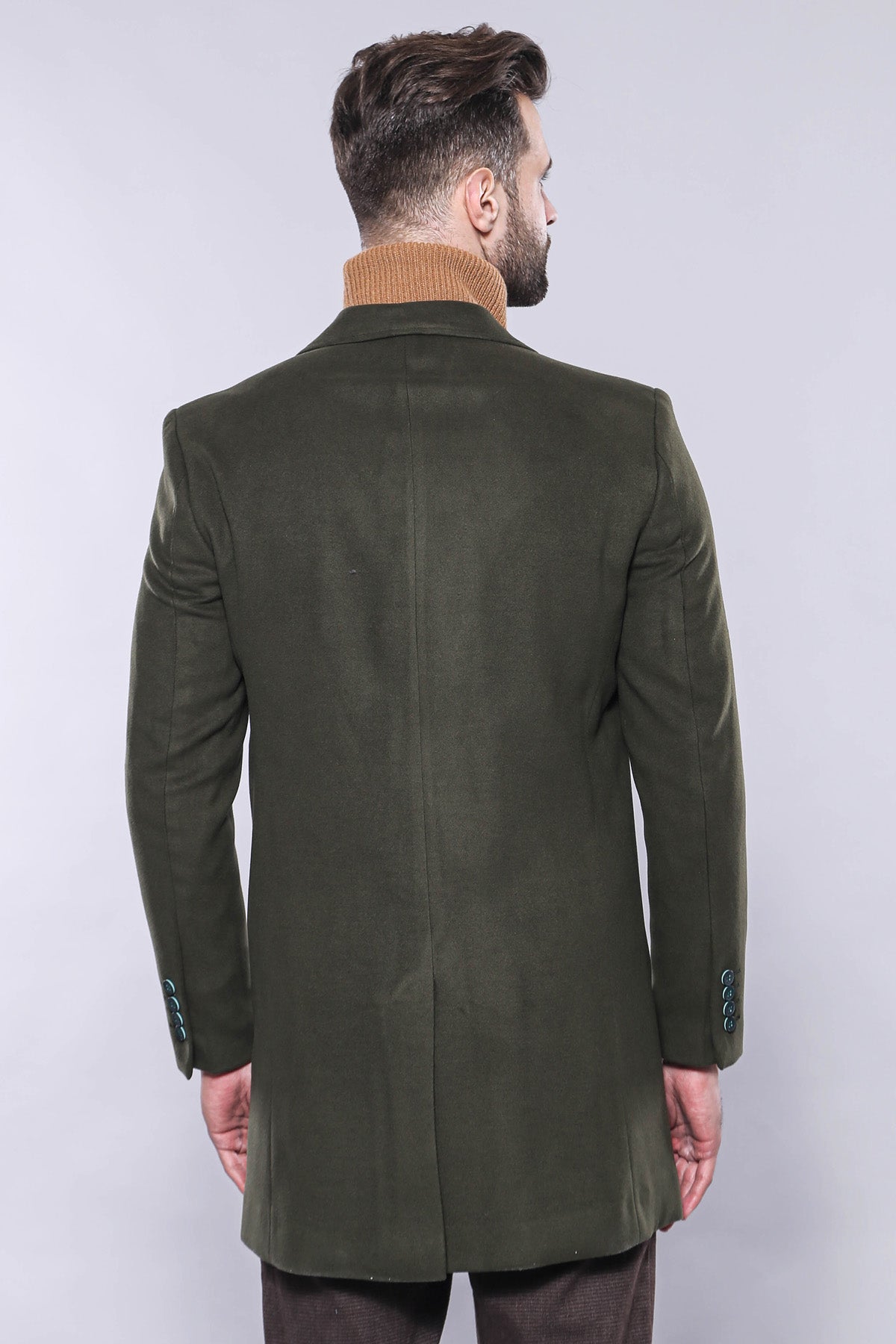 A: Its deep olive tone, classic peak lapels, and tailored silhouette offer timeless elegance with seasonal warmth.