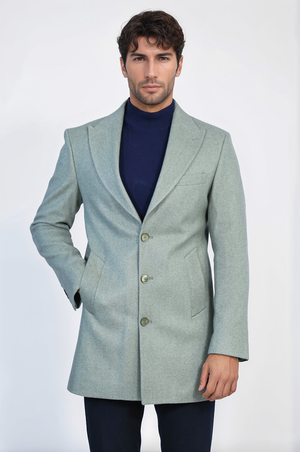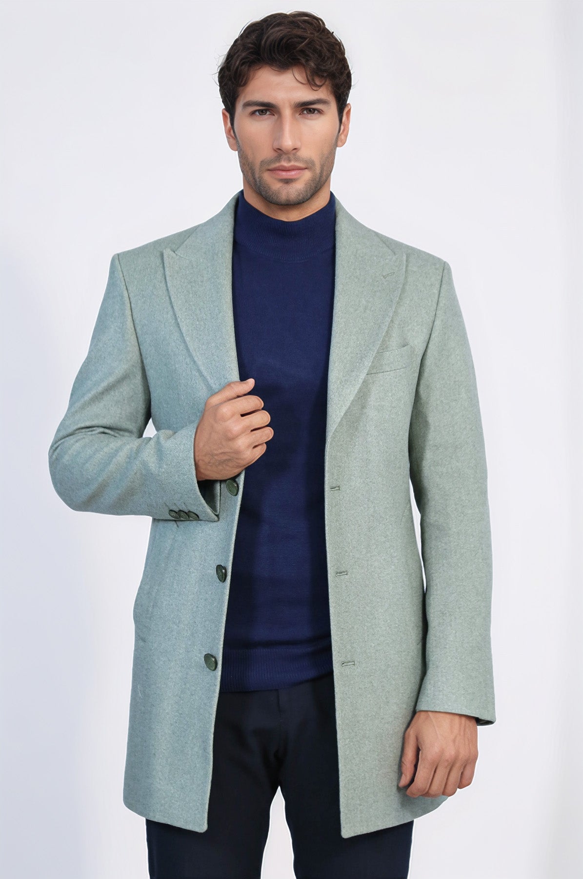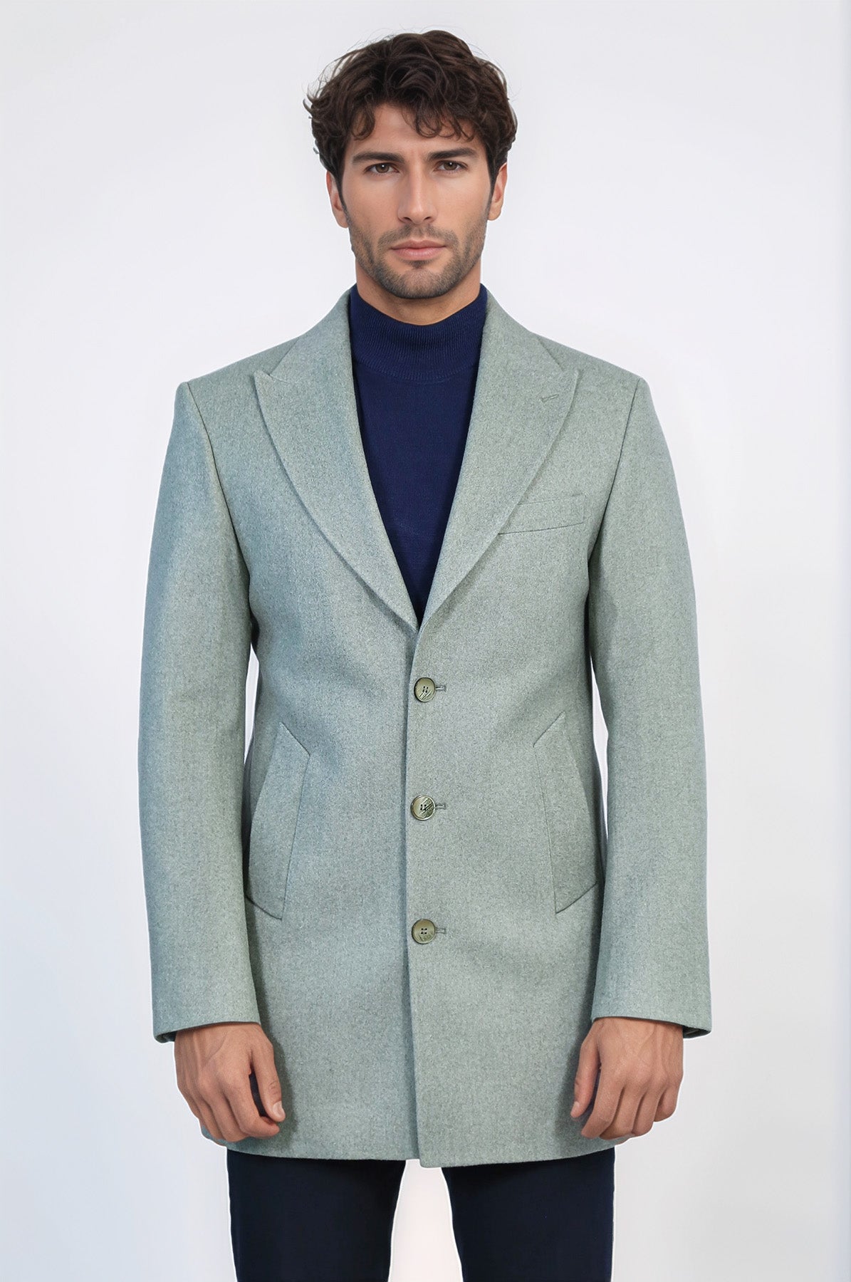 Wide Lapel Wool Oil Green Men Coat - Wessi