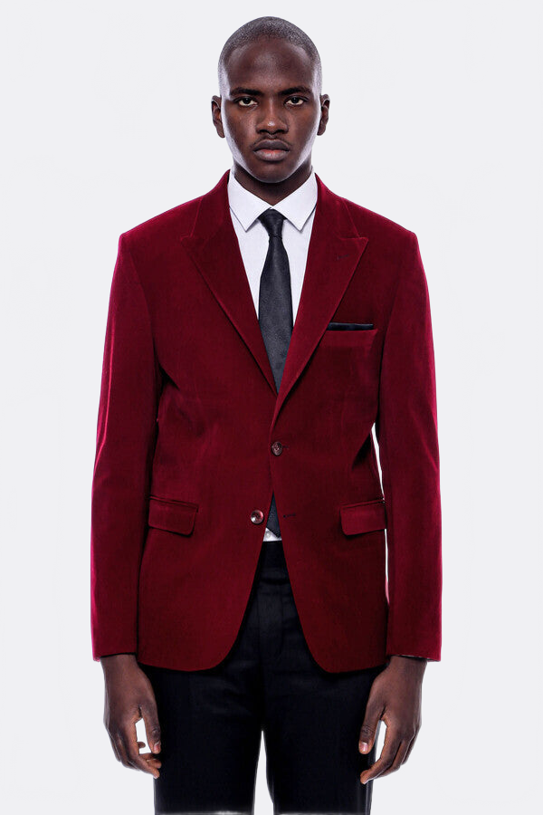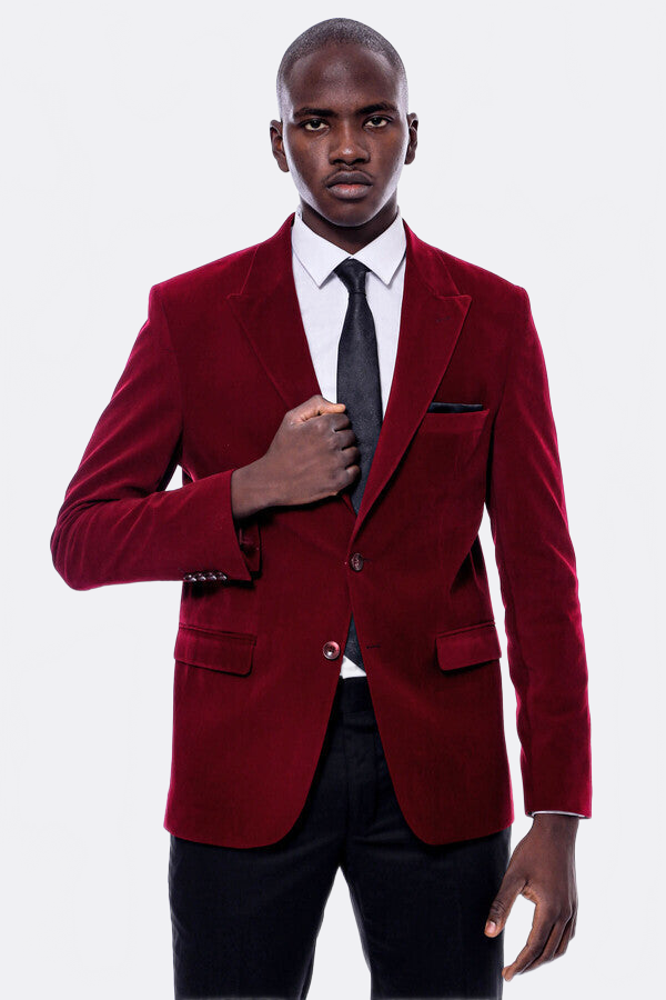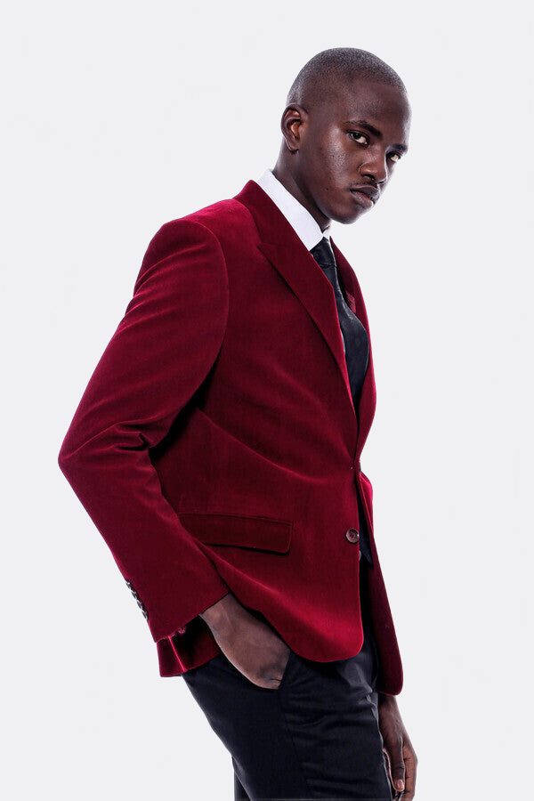 Velvet men blazers are hotter than ever and they’re here to stay! Whether you’re looking to dress up for a night out or add some edge to your everyday style, the velvet blazer is always a great choice. For those looking for how to pull off this look without breaking a sweat, we have all the products you need. This is the perfect blazer for that special occasion! Crafted with premium velvet and suede in a luxurious burgundy hue, this exquisite design features a wide peak lapel that will make you stand out. With its sophisticated and stylish look, it's perfect for weddings, parties or any night event. This fashionable piece of luxury will turn heads wherever you go. Make sure to grab it today and be prepared to impress on your next special occasion!