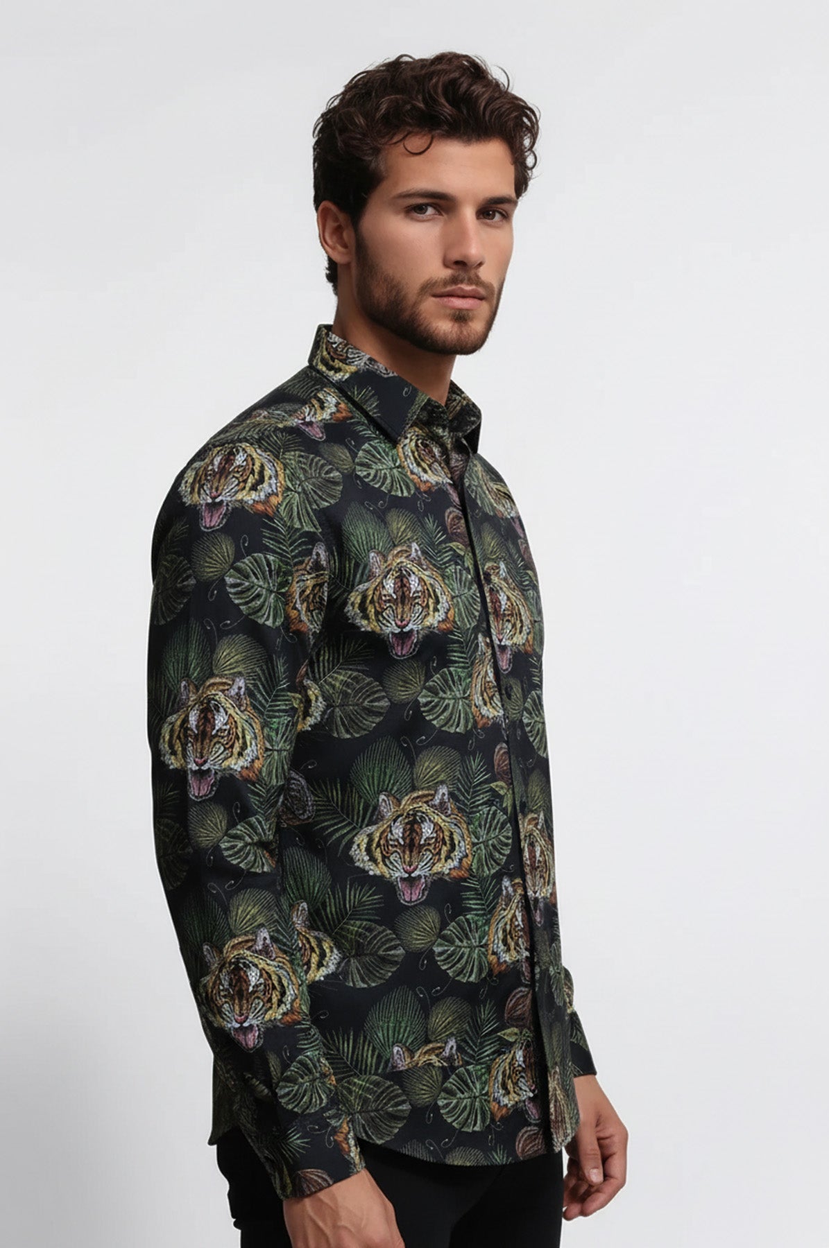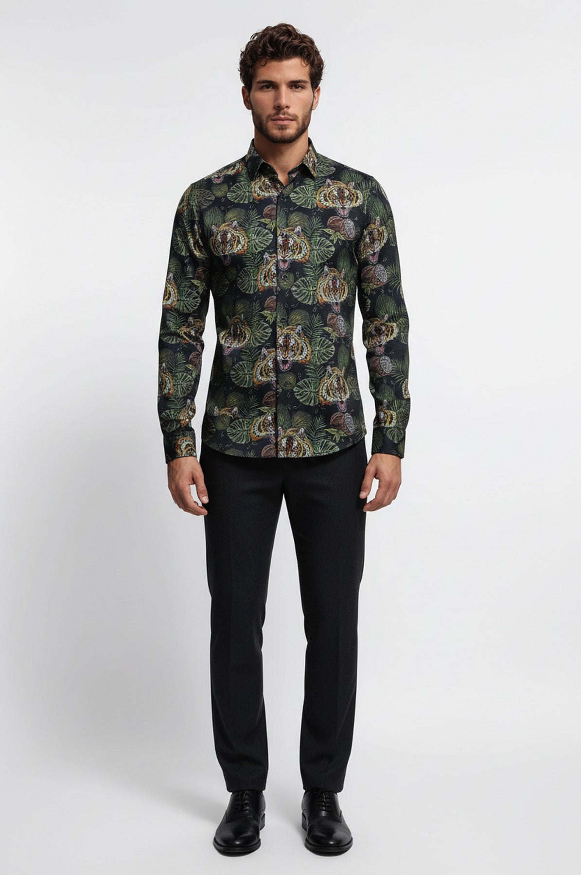 Let's add some flair to your wardrobe? This shirt features a special design pattern that is sure to catch eyes and turn heads. With its bold colors and intricate design, you'll stand out from the crowd in the best fashionable way. With its slim fit, it hugs your body in all the right places, creating a sleek and stylish silhouette. The long sleeves are making this shirt perfect for any season. Whether you're dressing up for a night out or dressing down for a casual weekend, our yellow and black leaf patterned white men's shirt is the perfect addition to your wardrobe. Try pairing it with dark denim jeans and a leather jacket for a casual yet put-together look. For a more relaxed vibe, wear it with khaki chinos and white sneakers. Shop now and don't miss out the opportunuties.